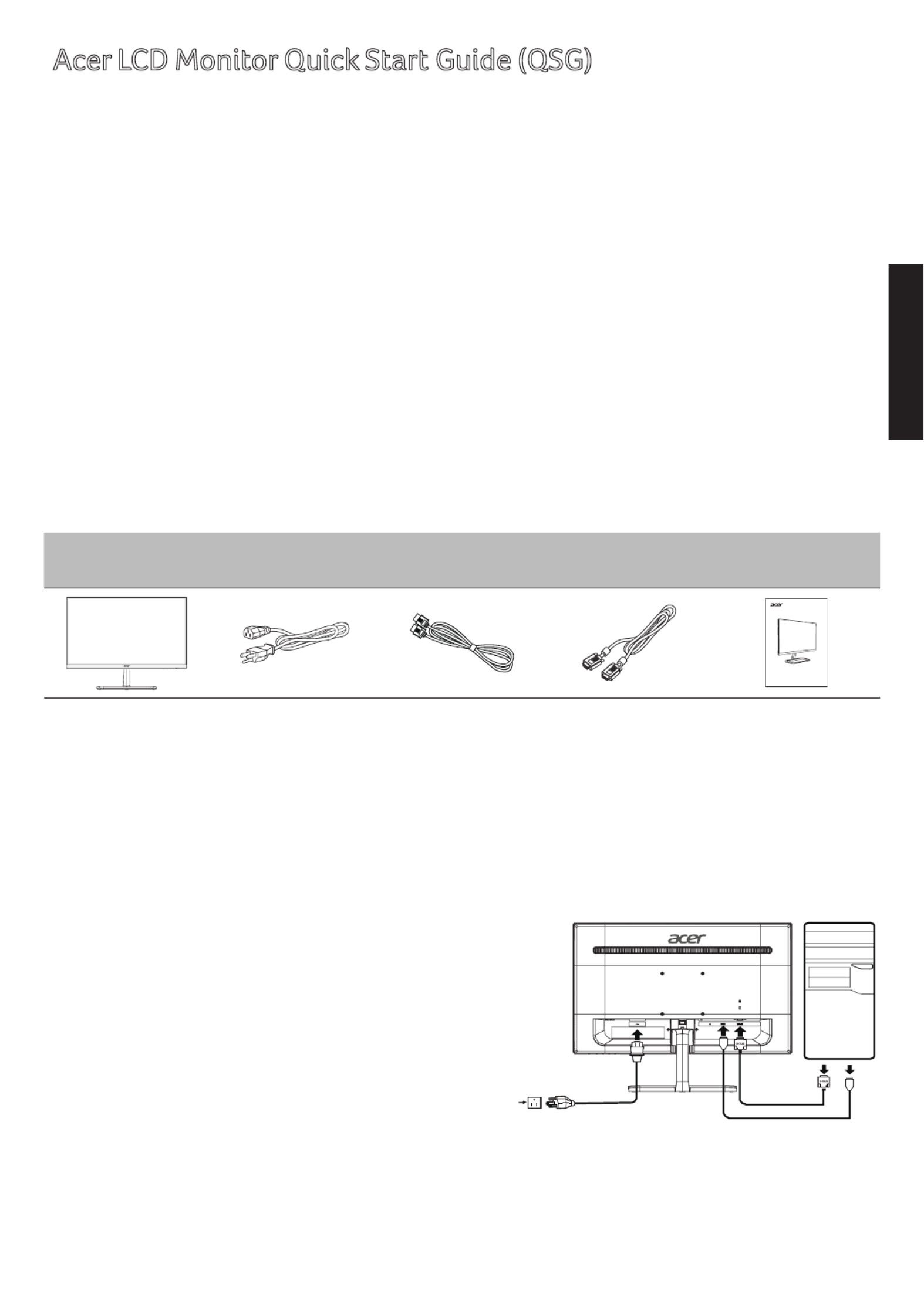 Acer LCD Monitor Quick Start Guide (QSG)