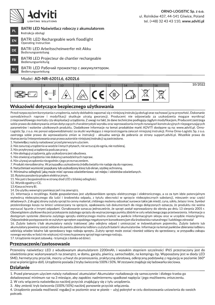 Adviti AD-NR-6201L6 Handleiding