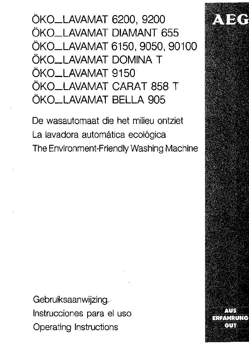 Hier is de AEG 91000 (Wasmachine) gebruikershandleiding. 35 pagina's in taal Nederlands met een gewicht van 0.7 Mb. Als u geen antwoorden op uw probleem kunt vinden Vraag het onze community.