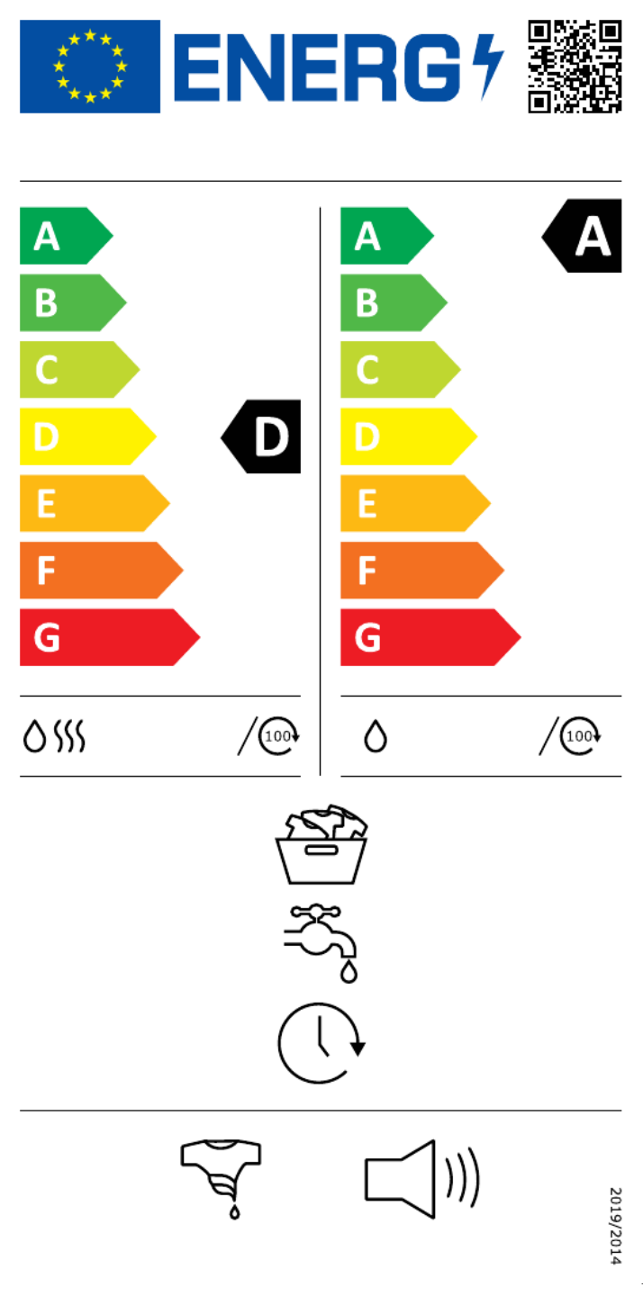 | Energie-efficiƫntieklasse (wassen en drogen): | D |