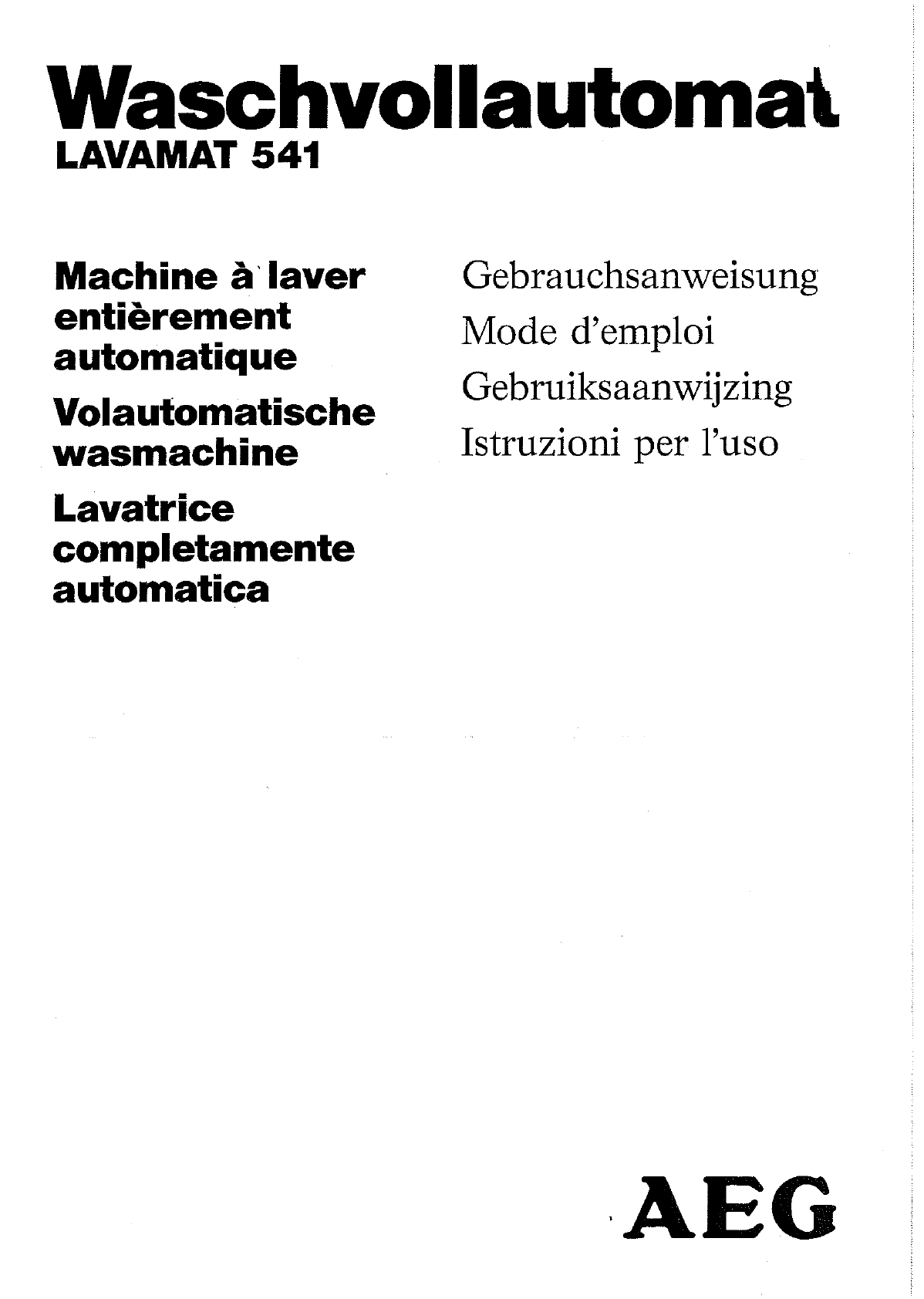 AEG Lavamat 541 Wasmachine Handleiding
