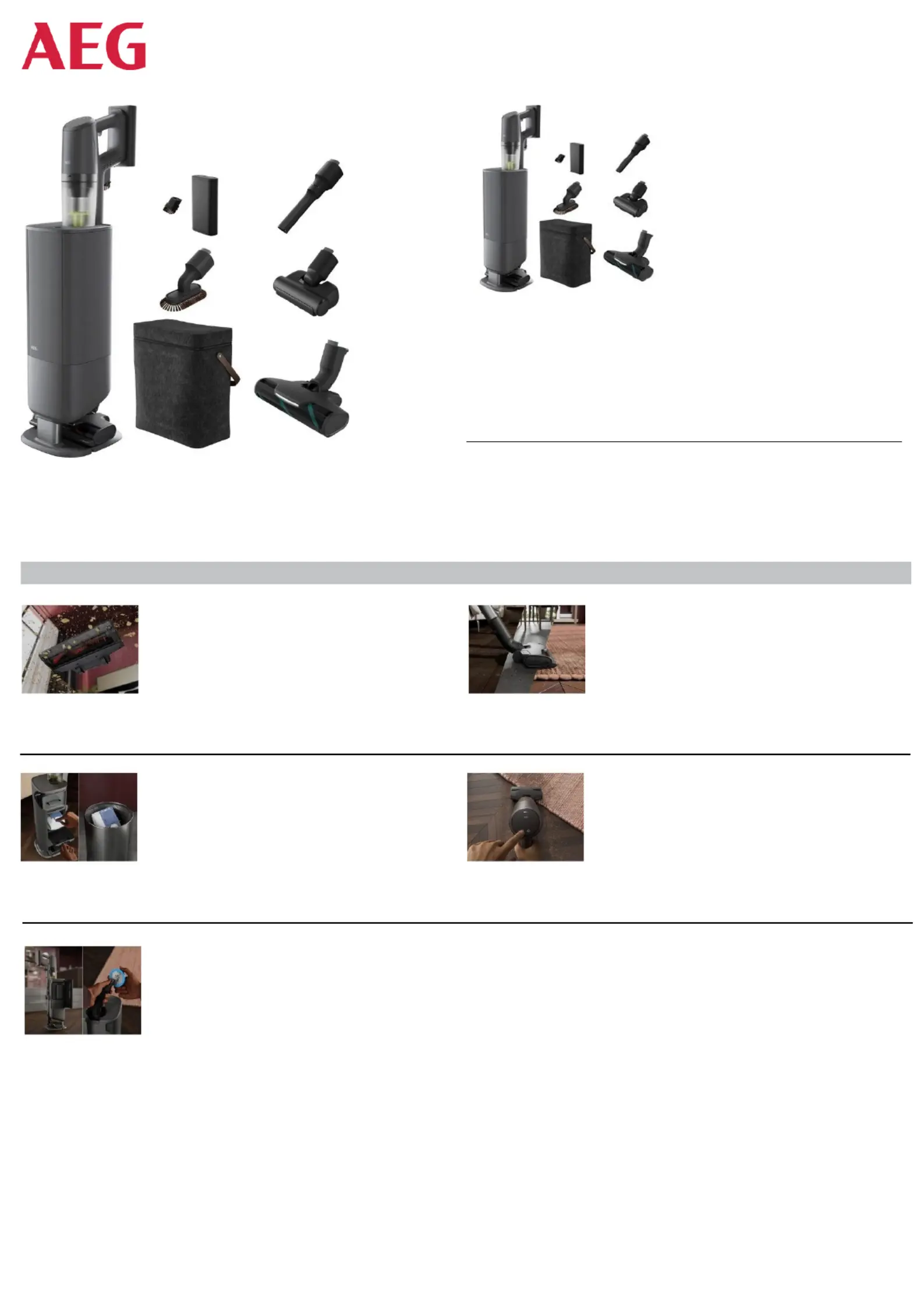 • Opberging van de stofzuiger: All-in1 leeg- en laadstation voorzien van extra
