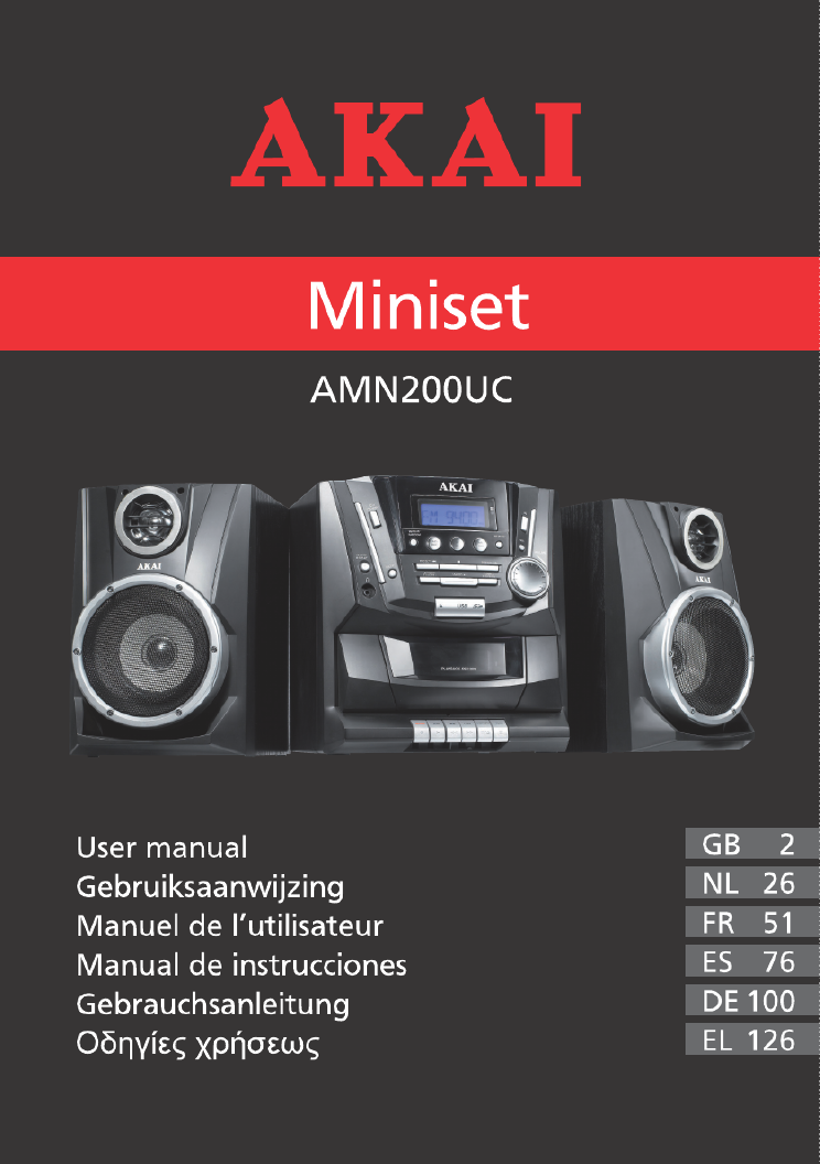 Hier is de Akai AMN200UC (Hifi systeem) gebruikershandleiding. 26 pagina's in taal Nederlands met een gewicht van 2.0 Mb. Als u geen antwoorden op uw probleem kunt vinden Vraag het onze community.
