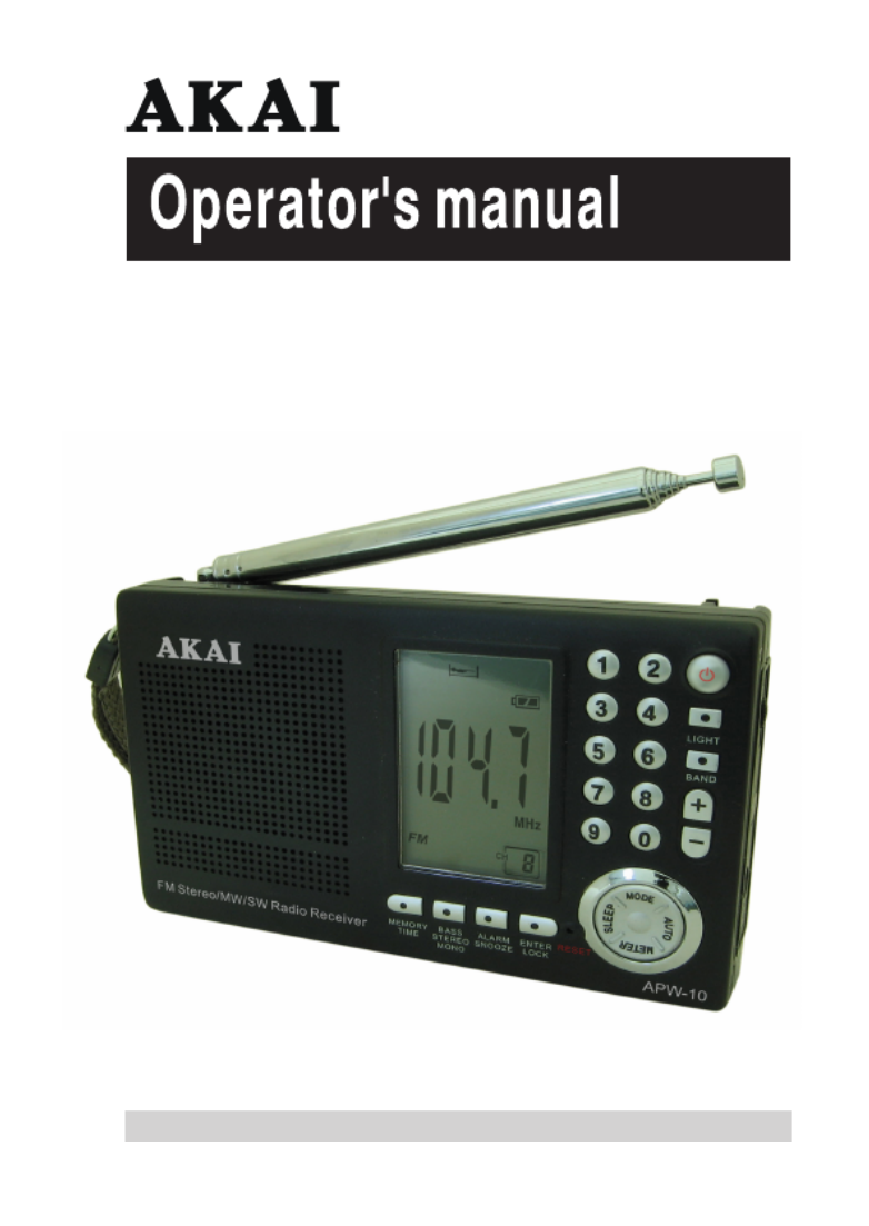 Hier is de Akai APW-10 (Radio) gebruikershandleiding. 20 pagina's in taal Nederlands met een gewicht van 1.6 Mb. Als u geen antwoorden op uw probleem kunt vinden Vraag het onze community.