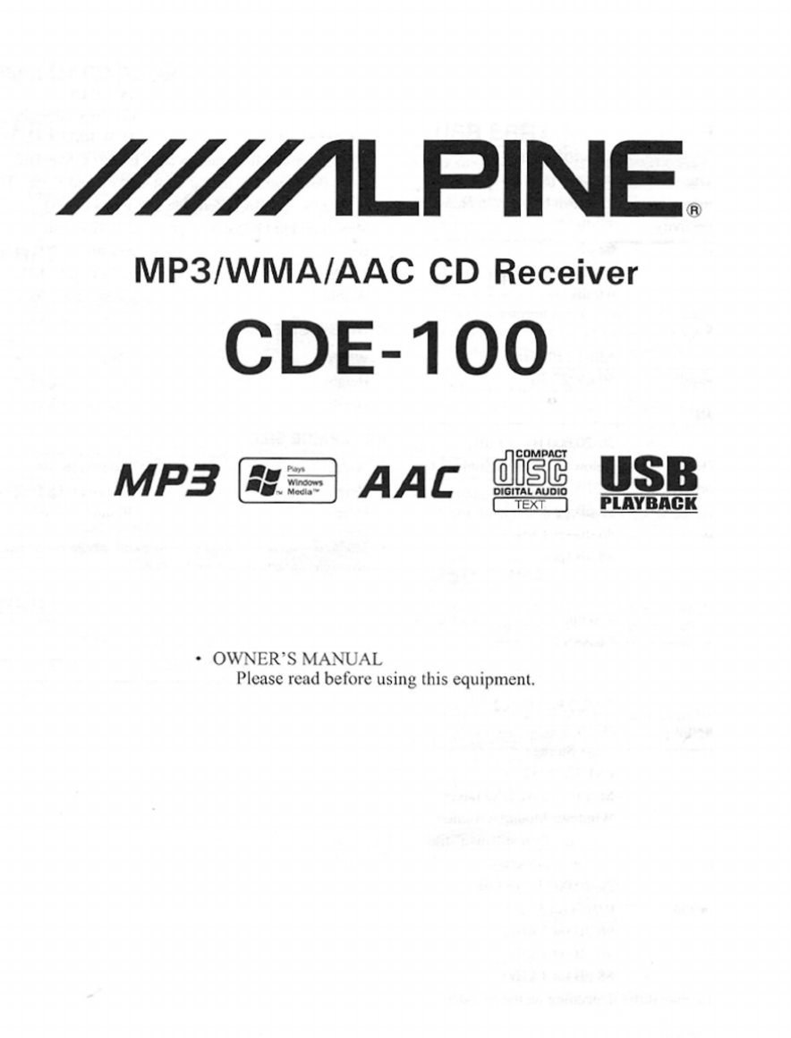 Hier is de Alpine CDE-100E (Autoradio) gebruikershandleiding. 12 pagina's in taal - met een gewicht van 5.0 Mb. Als u geen antwoorden op uw probleem kunt vinden Vraag het onze community.