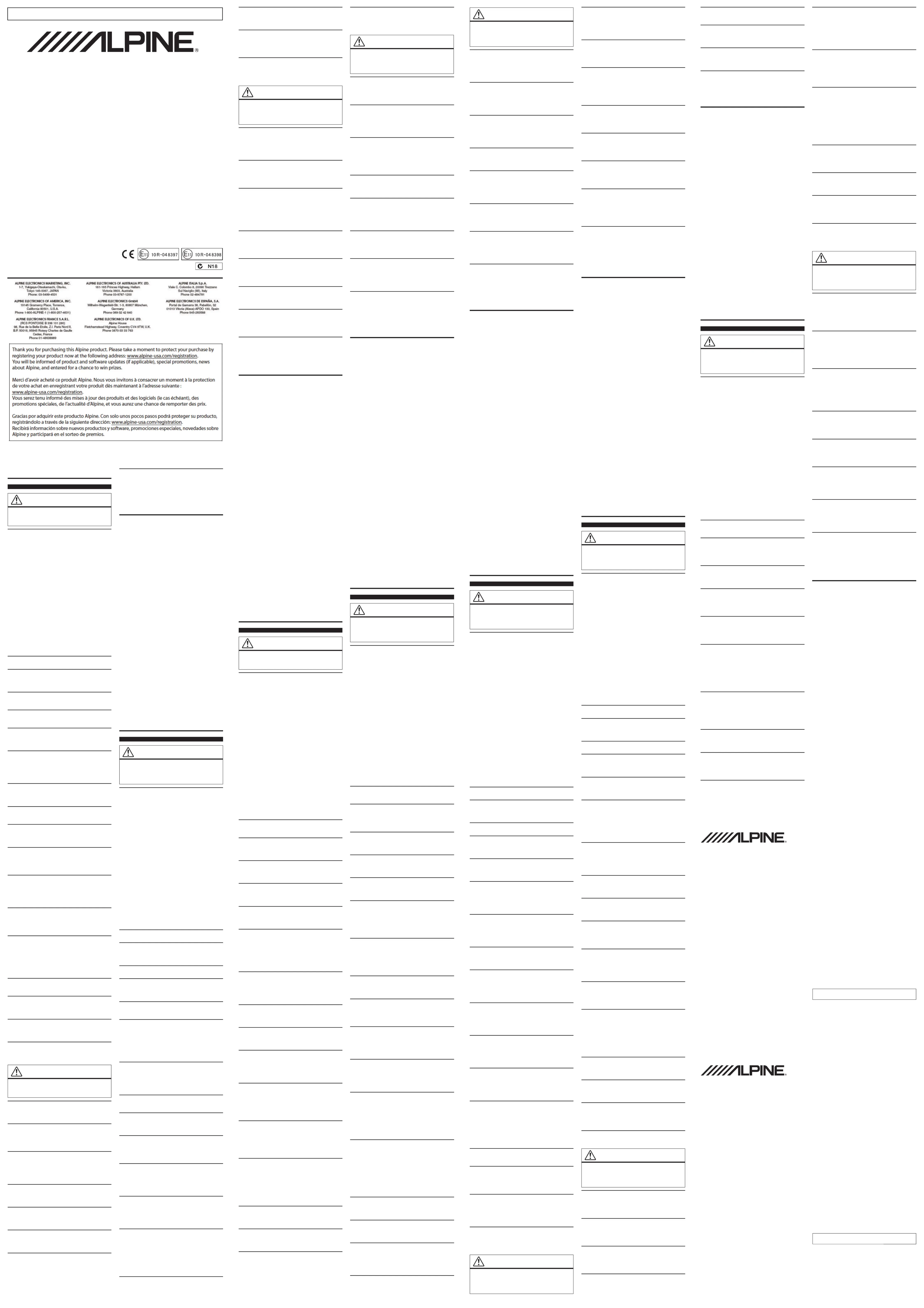 Fidèles à leur engagement de ne fournir que des produits de qualité, ALPINE ÉLECTRONIQUE DE L’AMÉRIQUE, INC. et ALPINE ÉLECTRONIQUE DU CANADA, INC. (Alpine) sont heureuses de