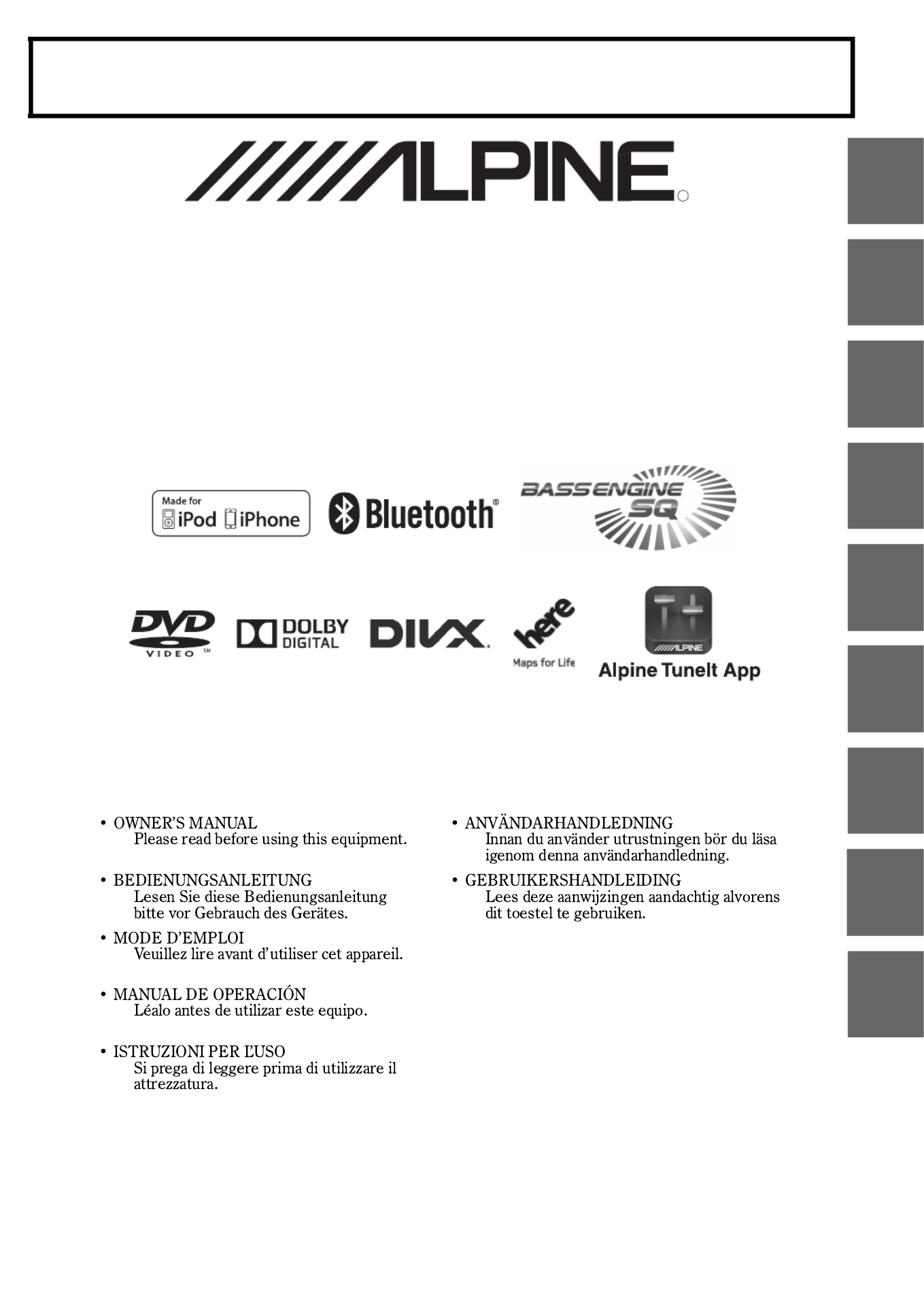 Hier is de Alpine INE-W990BT (Navigator) gebruikershandleiding. 97 pagina's in taal Engels met een gewicht van 3.6 Mb. Als u geen antwoorden op uw probleem kunt vinden Vraag het onze community.