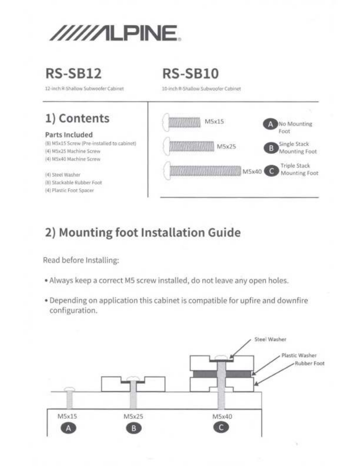 Hier is de Alpine RS-SB10 (Subwoofer) gebruikershandleiding. 10 pagina's in taal Engels met een gewicht van 0.5 Mb. Als u geen antwoorden op uw probleem kunt vinden Vraag het onze community.