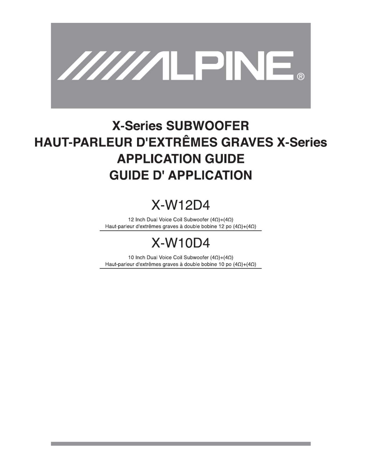 Hier is de Alpine X-W10D4 (Subwoofer) gebruikershandleiding. 13 pagina's in taal Engels met een gewicht van 3.2 Mb. Als u geen antwoorden op uw probleem kunt vinden Vraag het onze community.