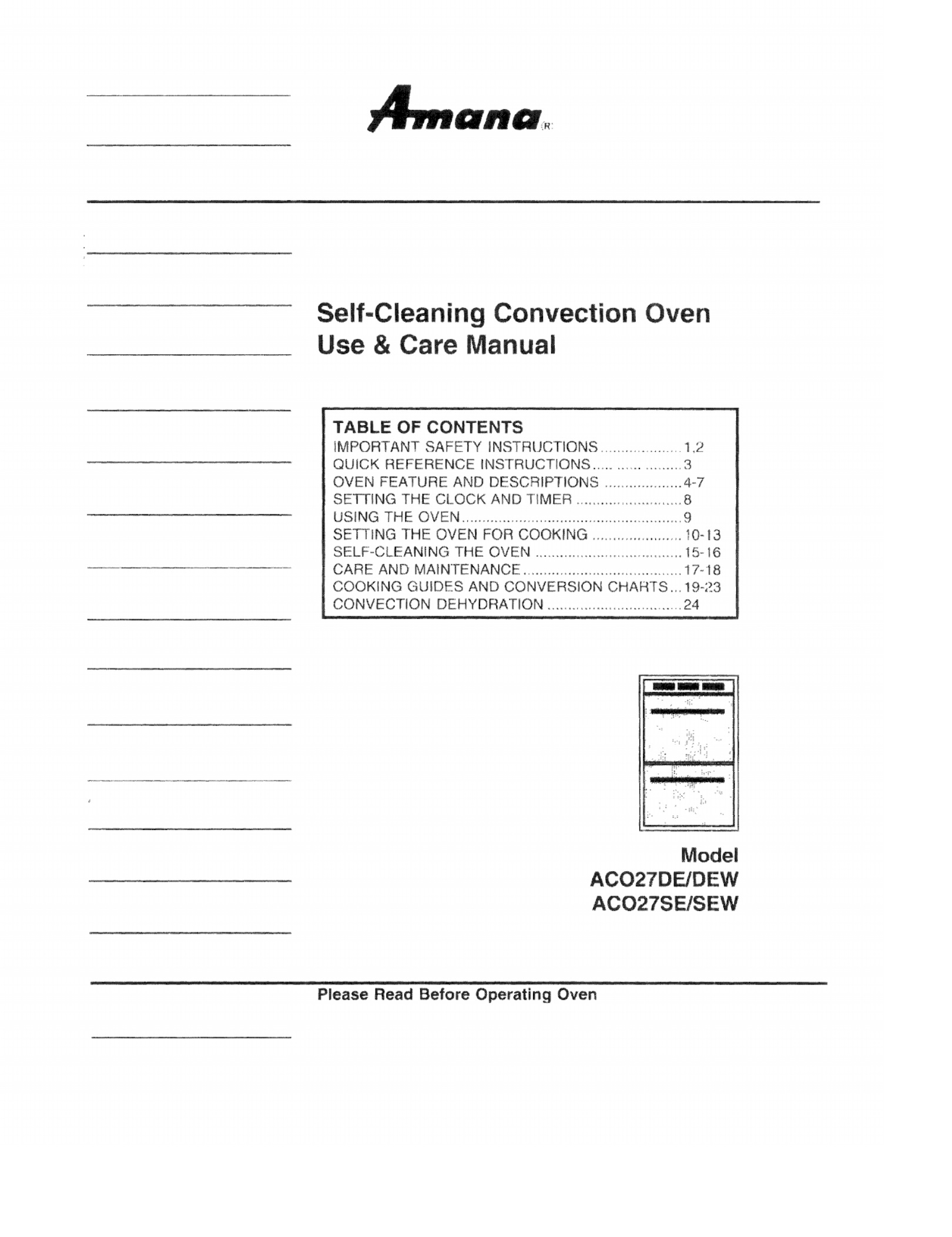 Amana ACO27SE1 Oven Handleiding