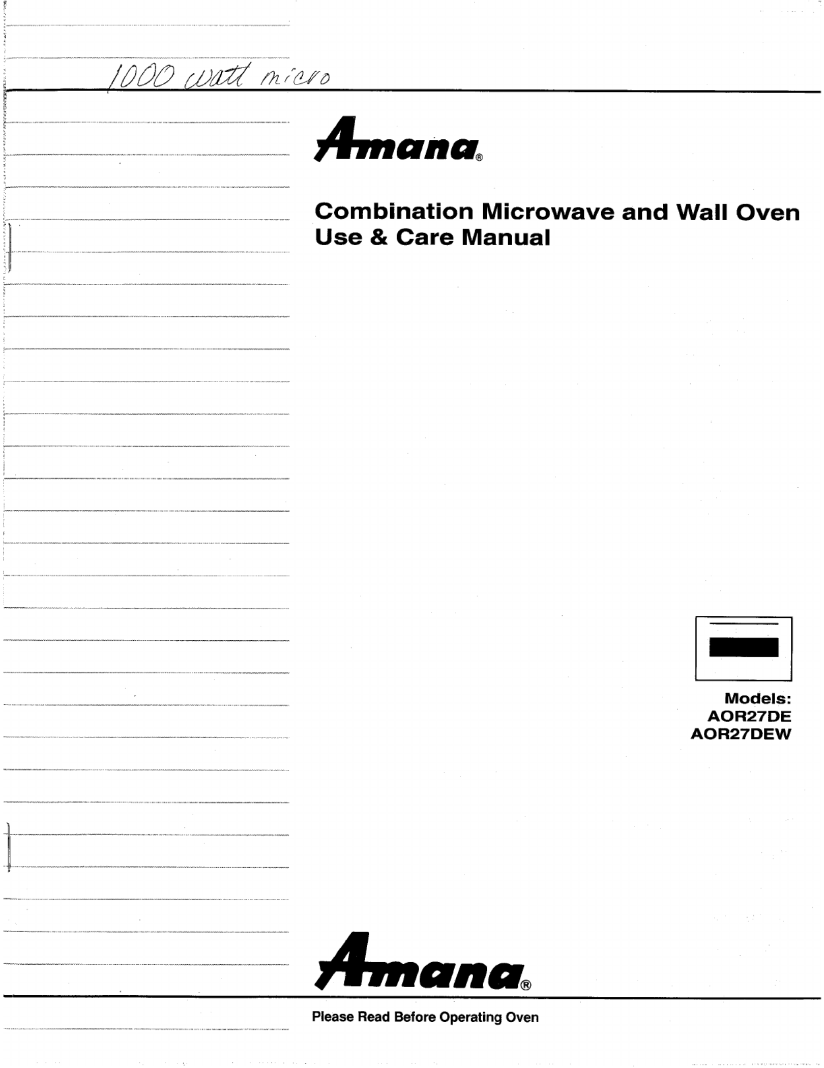 Hier is de Amana AOR27DEW Oven (OVENS) gebruikershandleiding. 34 pagina's in taal met een gewicht van 8.5 Mb. Als u geen antwoorden op uw probleem kunt vinden Vraag het onze community.