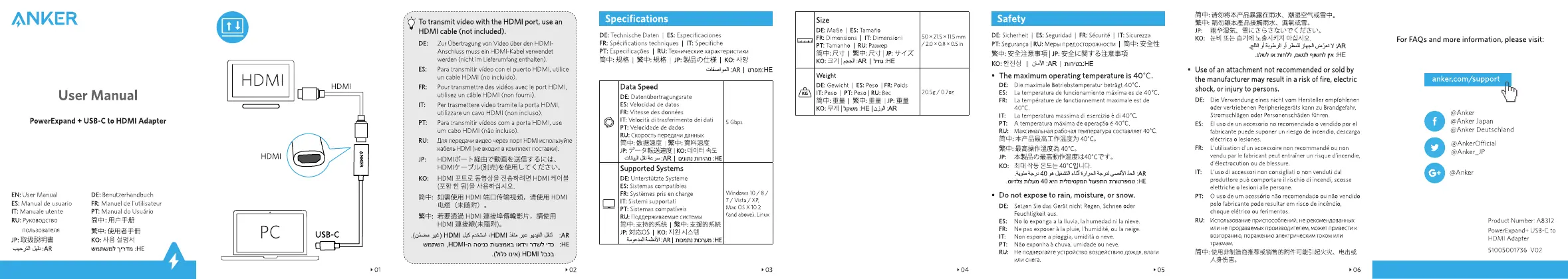 Hier is de Anker 310 USB-C to HDMI Adapter (Niet gecategoriseerd) gebruikershandleiding. 2 pagina's in taal met een gewicht van 309,541.0 Mb. Als u geen antwoorden op uw probleem kunt vinden Vraag het onze community.