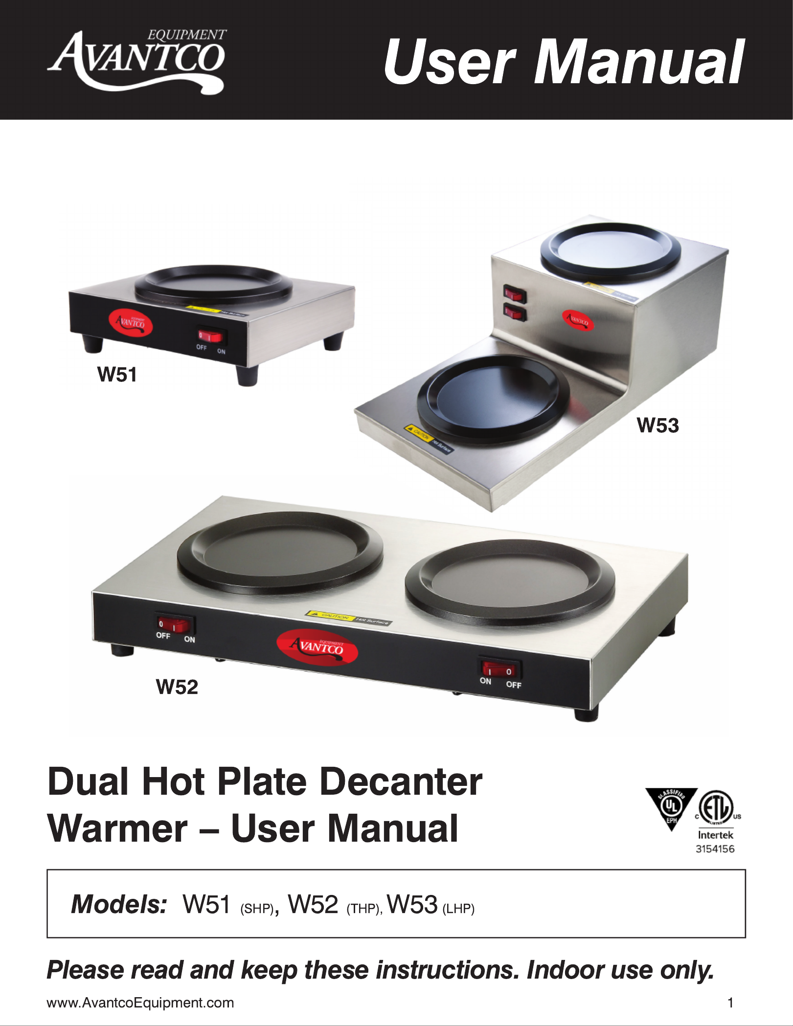 Avantco W51 Handleiding