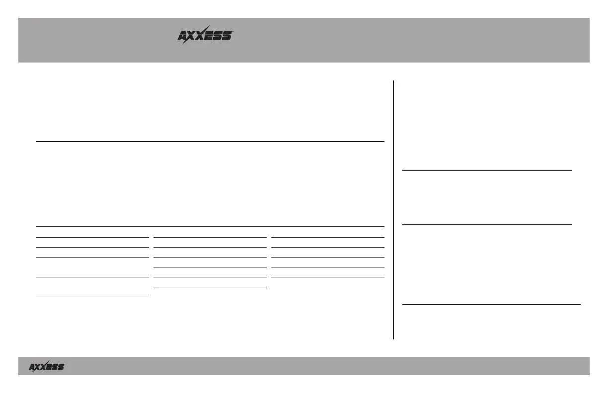 Hier is de Axxess AXGMLN-08 (Niet gecategoriseerd) gebruikershandleiding. 8 pagina's in taal met een gewicht van 1,014,460.0 Mb. Als u geen antwoorden op uw probleem kunt vinden Vraag het onze community.