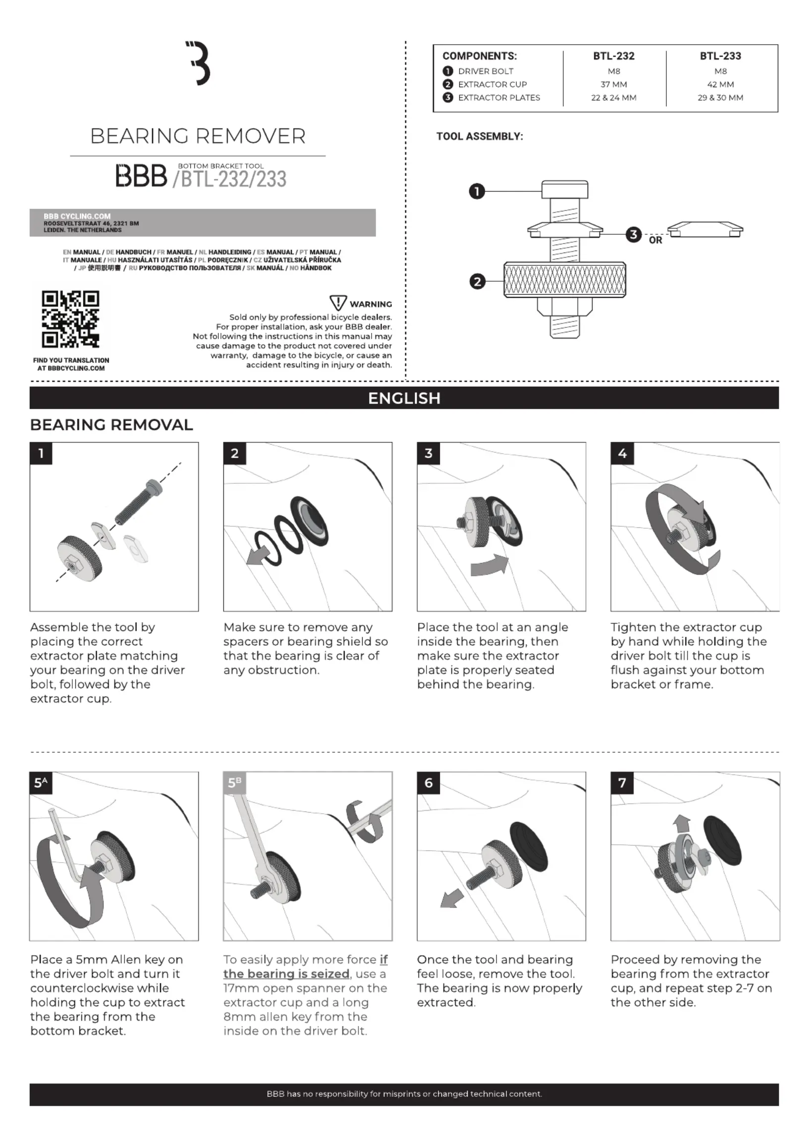 BBB Bearing remover DUB/BB30 BTL-233 Handleiding