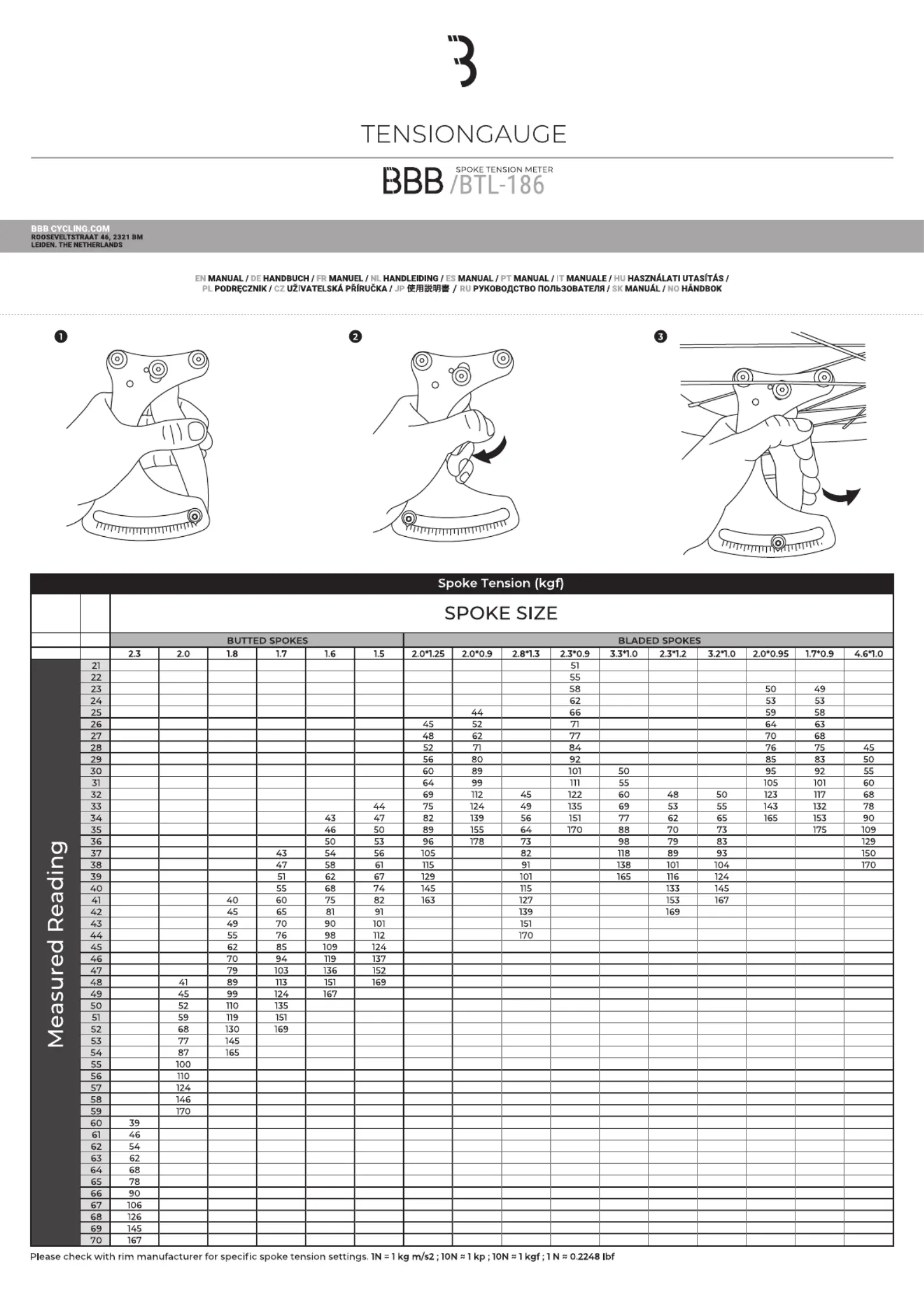 BBB TensionGauge BTL-186 Handleiding