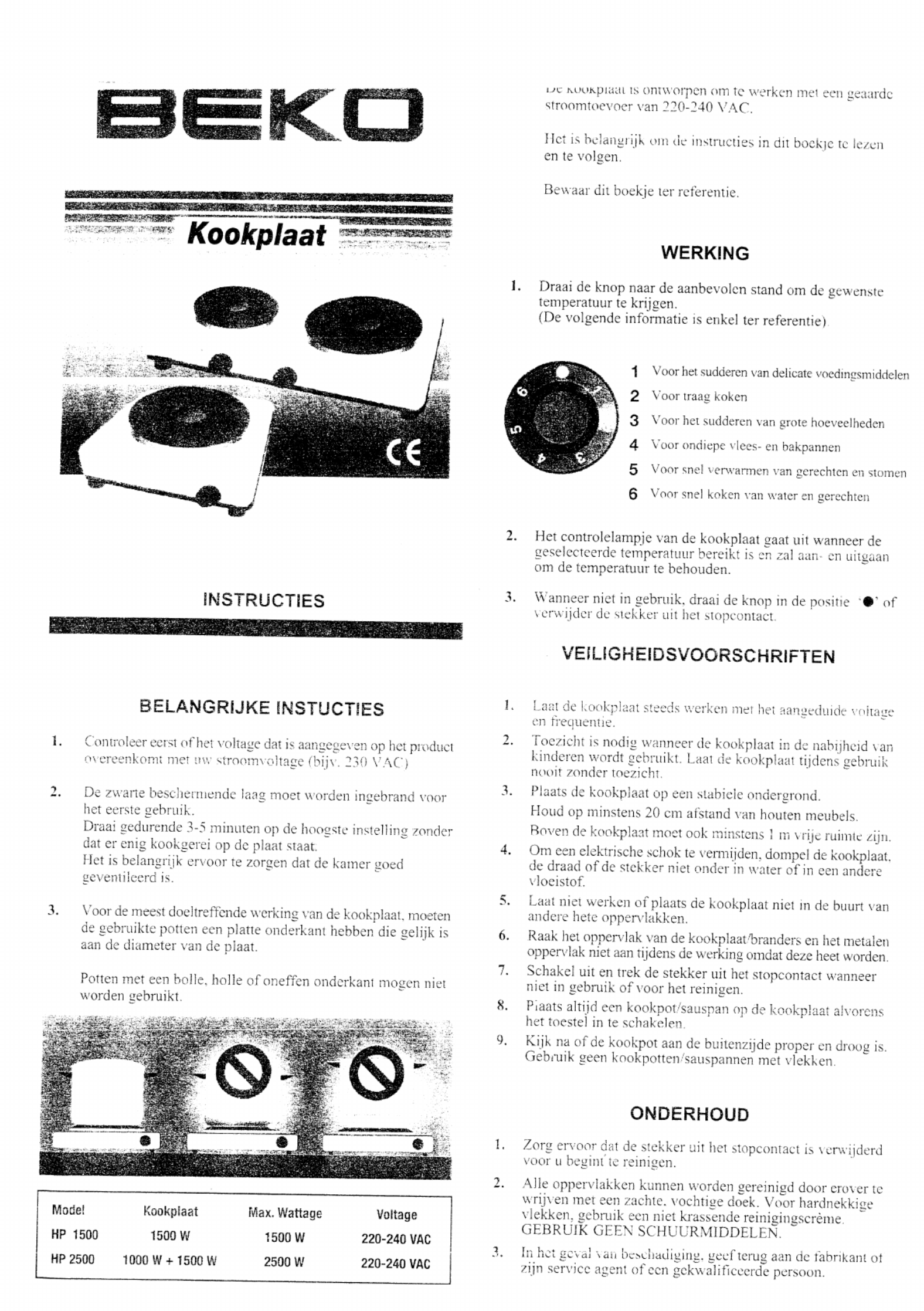 BEKO HP 2500 Handleiding