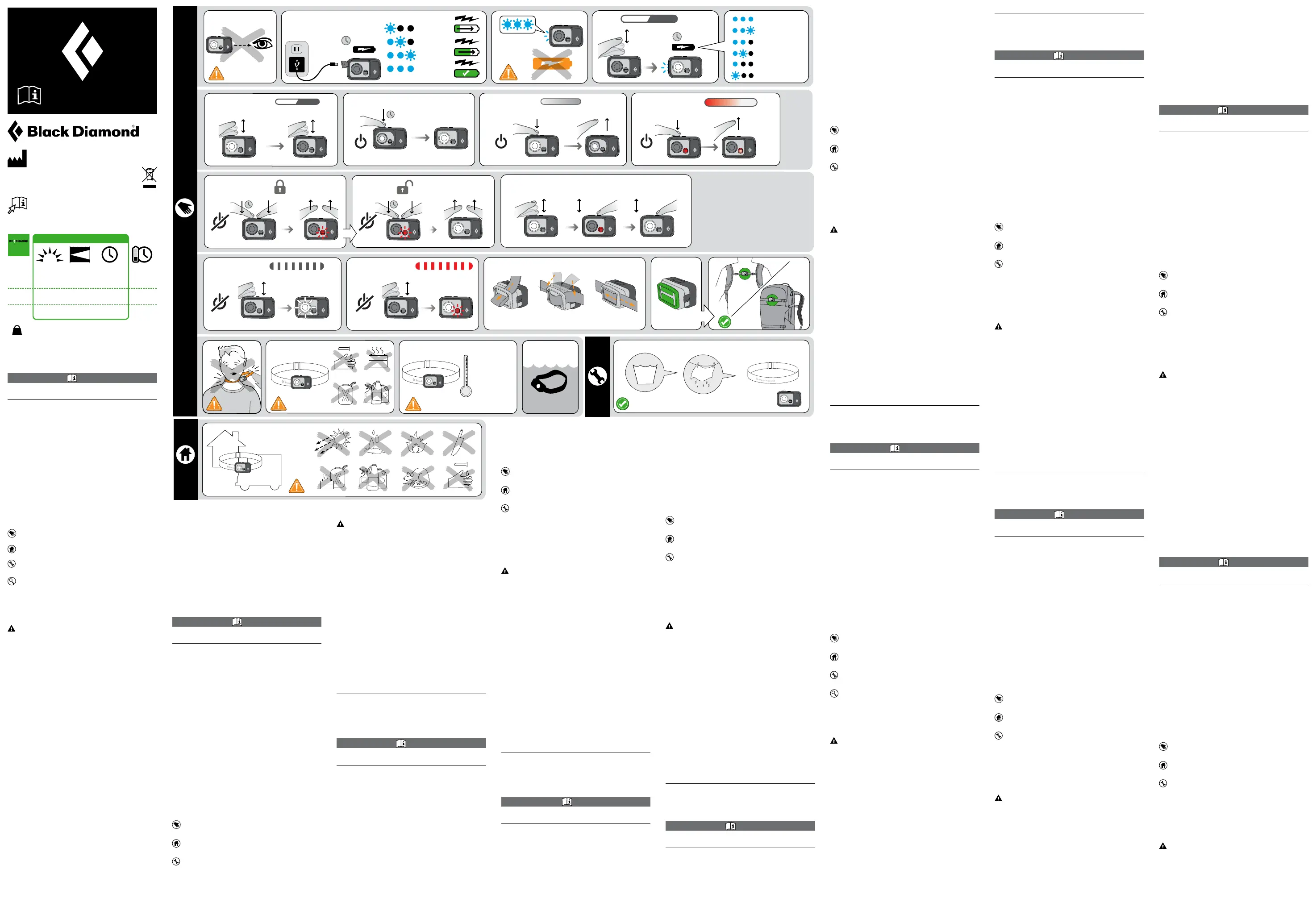 • Inspect your headlamp for proper operation prior to using and,