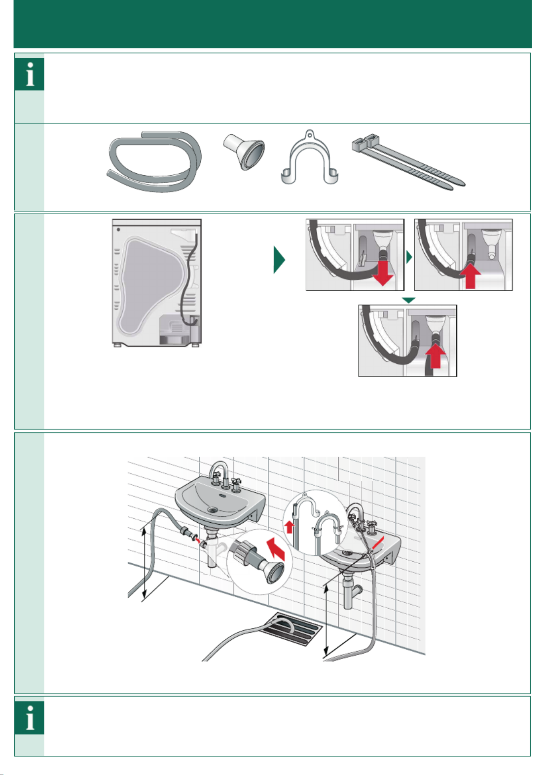 Depending on how you connect the hose (A, B C or ), fit the drain hose with the remaining accessories.