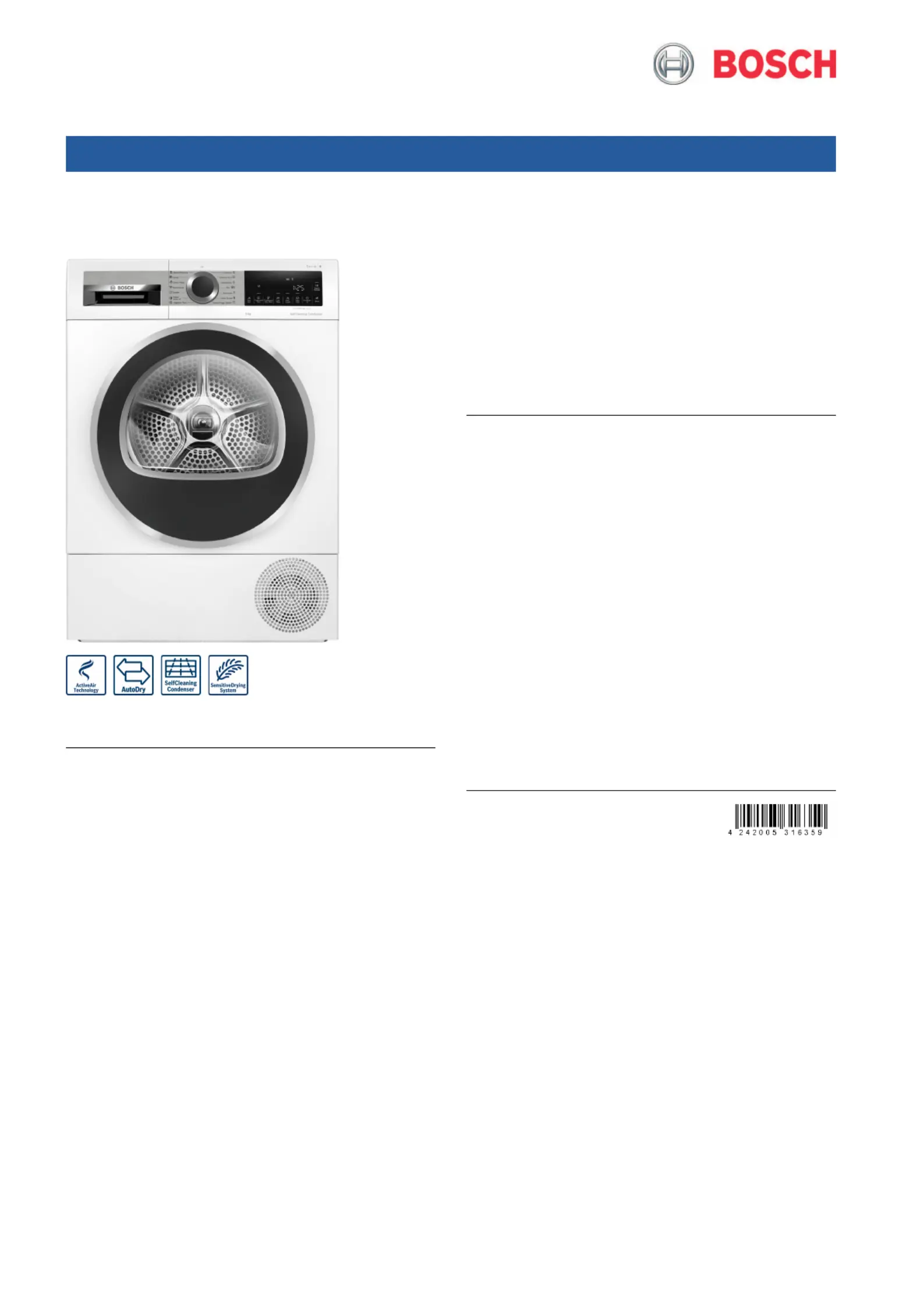 Hier is de Bosch WQG24570SG (Wasdroger) gebruikershandleiding. 3 pagina's in taal met een gewicht van 515,006.0 Mb. Als u geen antwoorden op uw probleem kunt vinden Vraag het onze community.