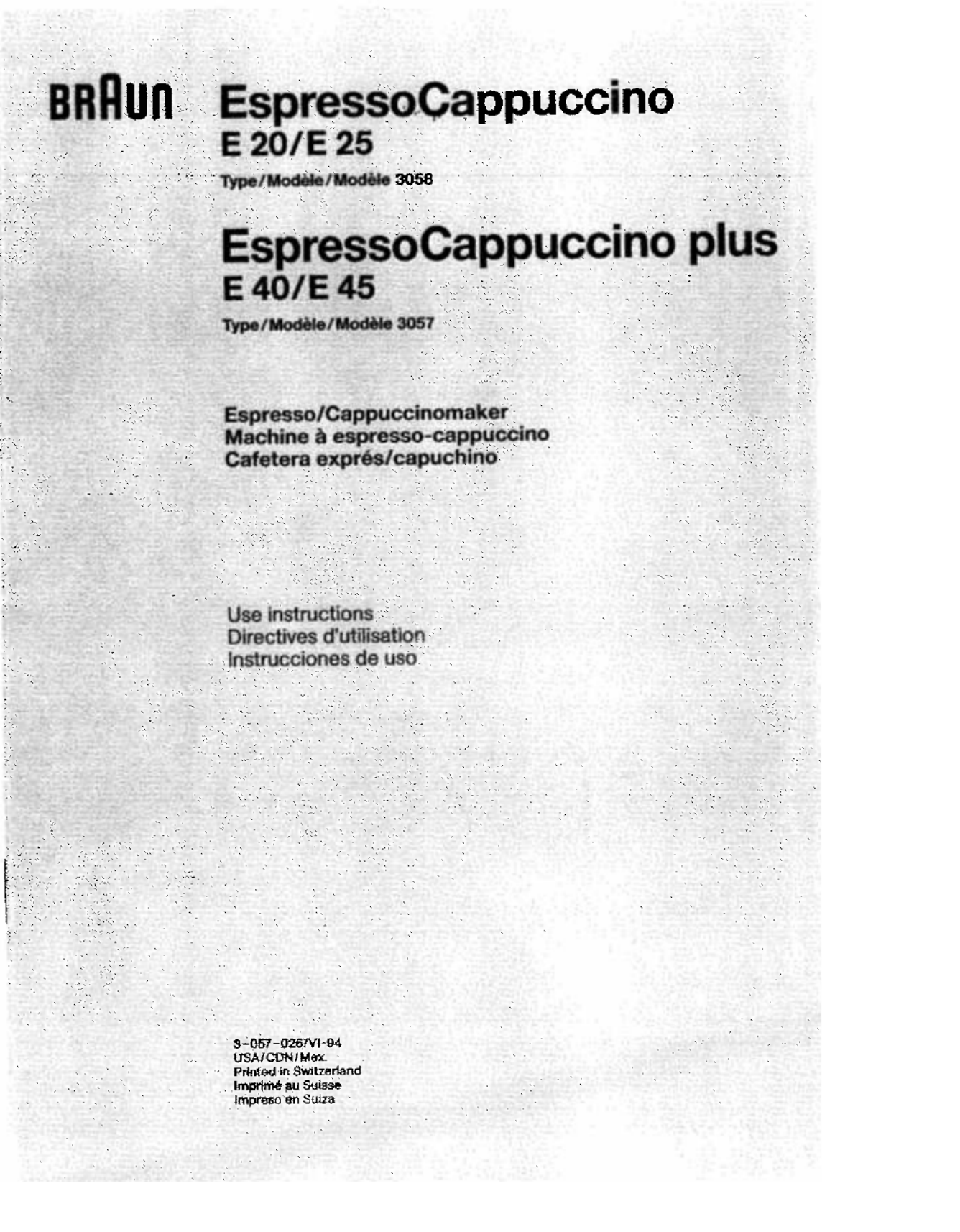 Braun E 20 EspresssoCappucino Handleiding