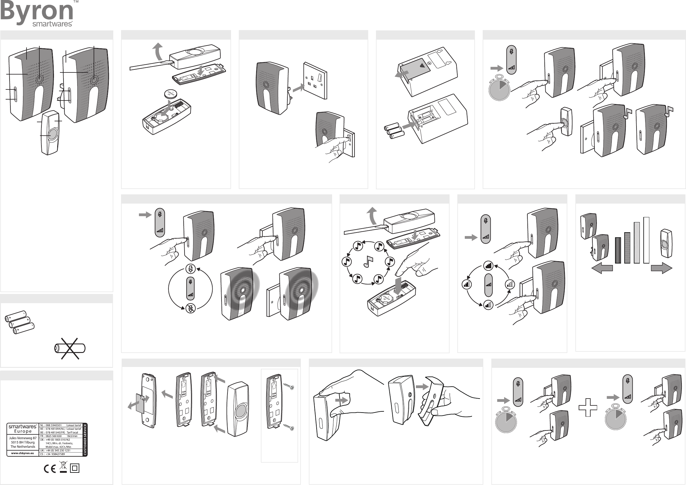 Hier is de Byron BY535 - 20.001.88 (Deurbel) gebruikershandleiding. 2 pagina's in taal Nederlands, Deutsch, Espanõl, English, Français met een gewicht van 3.1 Mb. Als u geen antwoorden op uw probleem kunt vinden Vraag het onze community.