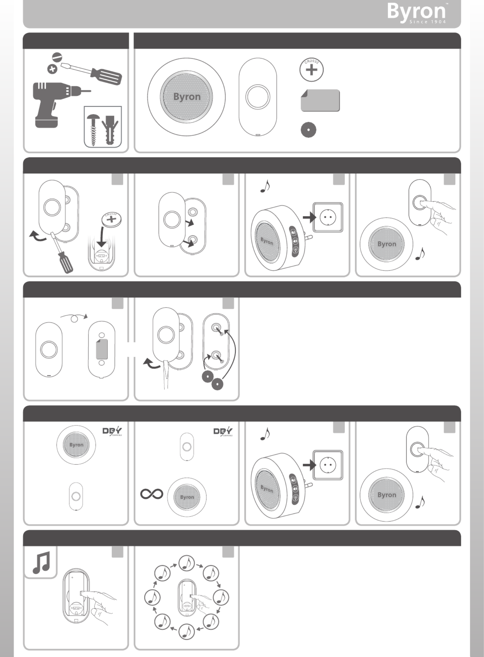 Hier is de Byron DBY-23512 (Deurbel) gebruikershandleiding. 2 pagina's in taal Nederlands met een gewicht van 0.5 Mb. Als u geen antwoorden op uw probleem kunt vinden Vraag het onze community.