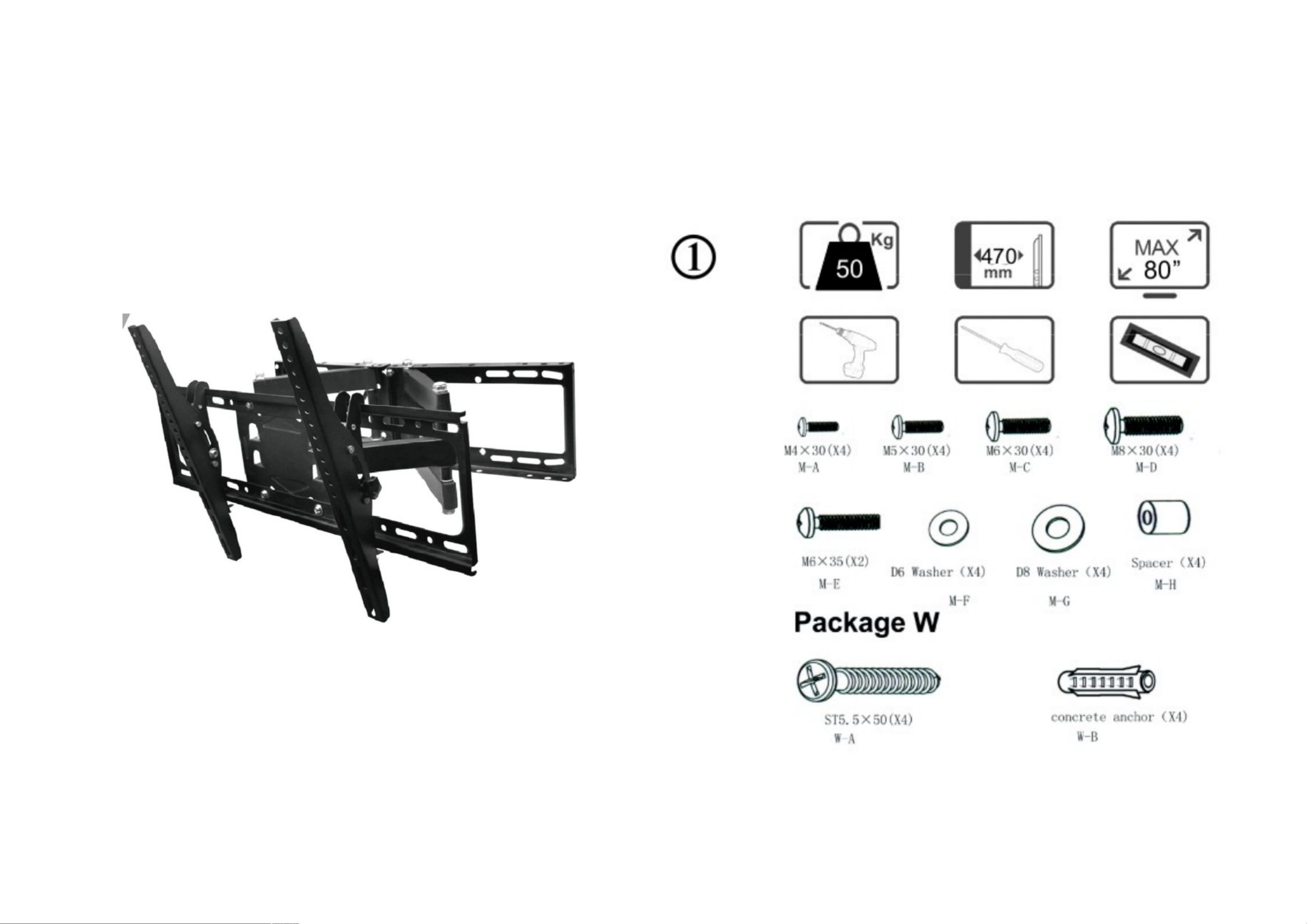 TV wall mount 600 x 400mm, 32" - 80"