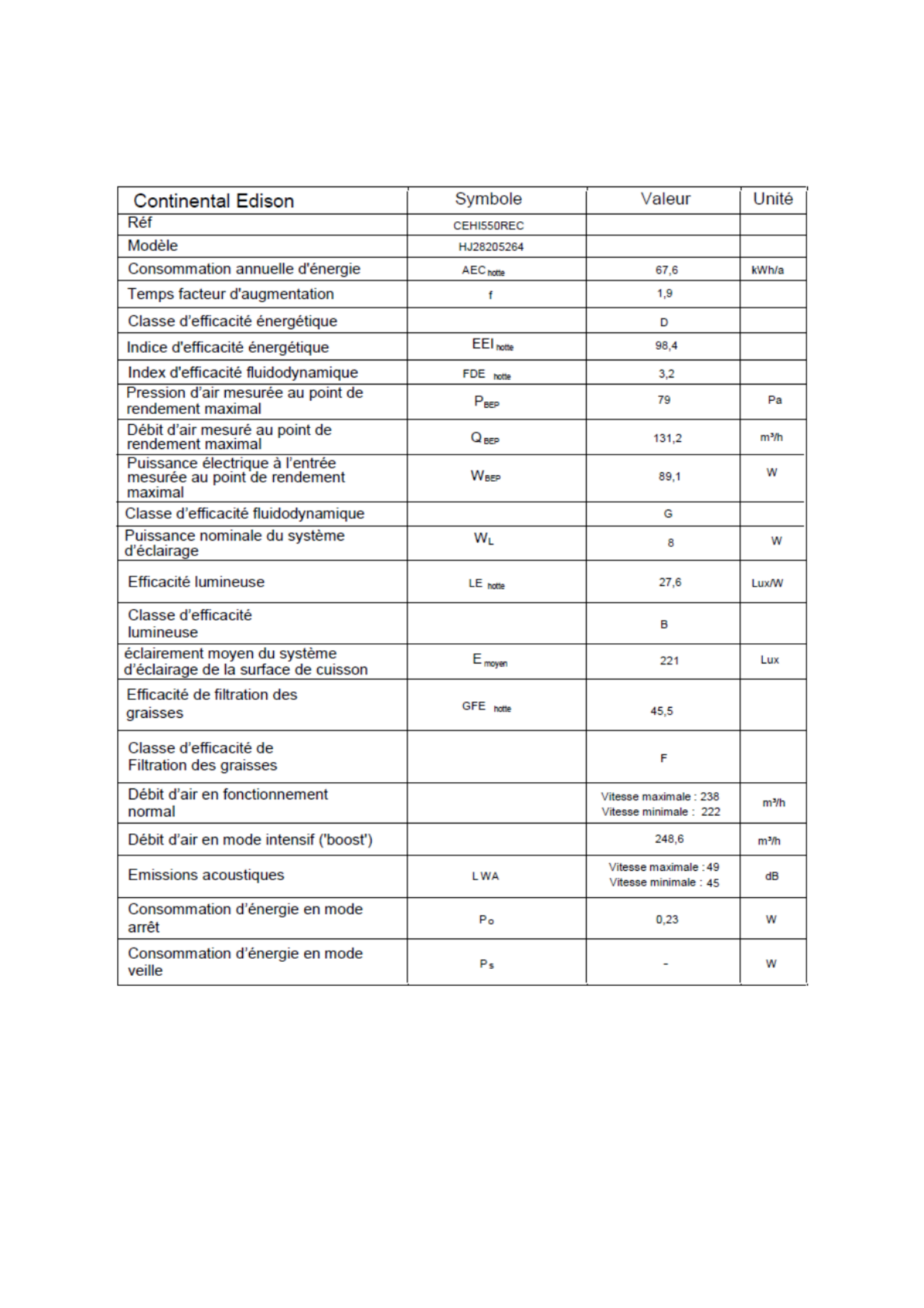 | Model: | CEHI550REC |