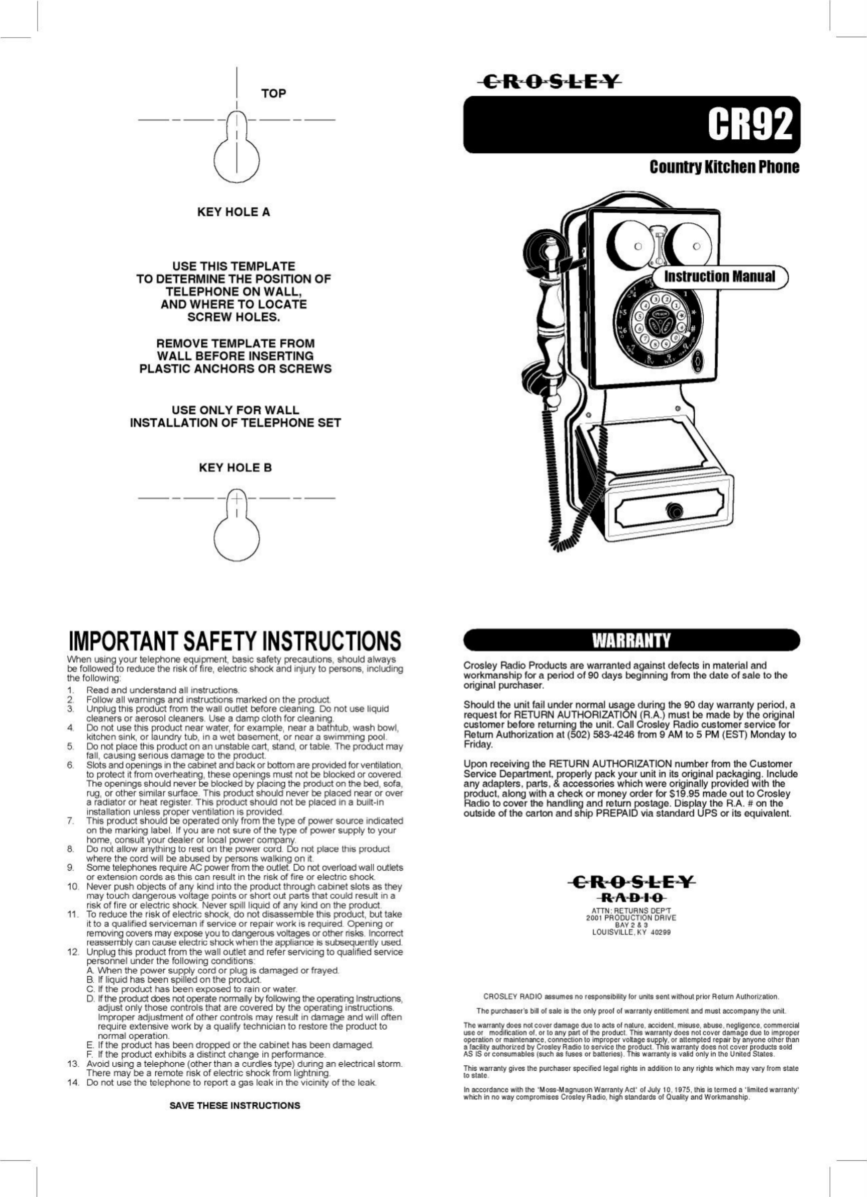 Hier is de Crosley CR92 (Telefoon) gebruikershandleiding. 2 pagina's in taal - met een gewicht van 2.0 Mb. Als u geen antwoorden op uw probleem kunt vinden Vraag het onze community.