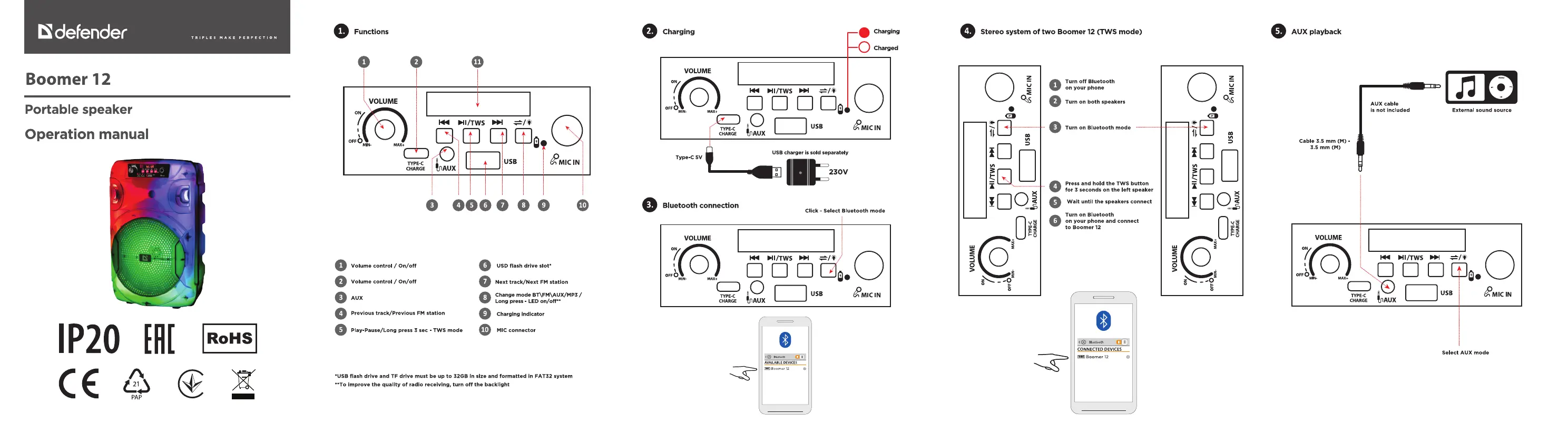Hier is de Defender Boomer 12 (Speaker) gebruikershandleiding. 8 pagina's in taal met een gewicht van 3,450,300.0 Mb. Als u geen antwoorden op uw probleem kunt vinden Vraag het onze community.