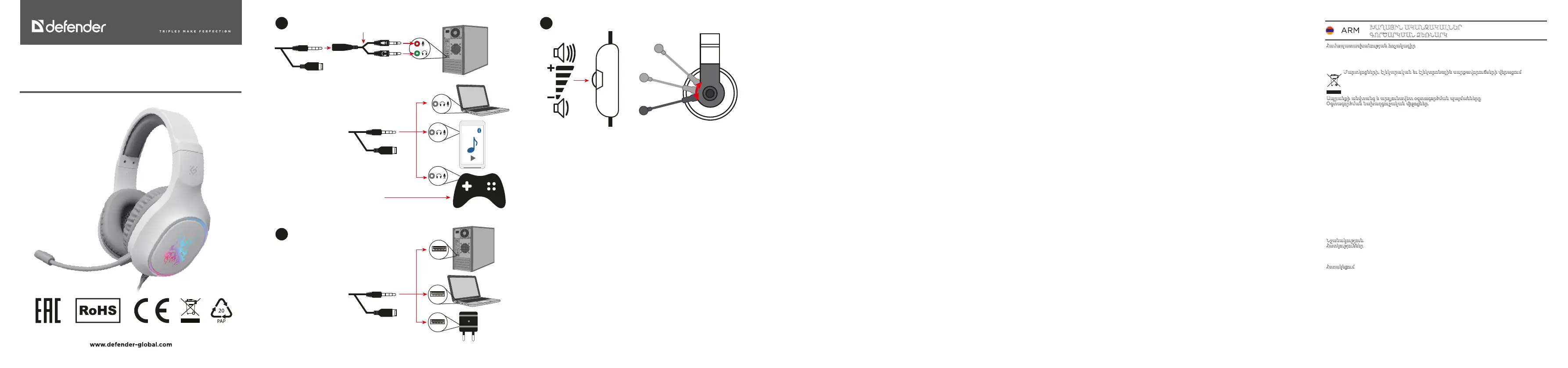 խաղային կոնսլների, սմարթֆոնների և պլանշետների հետ • Ձայնի վերահսկմ • Ադապտոր