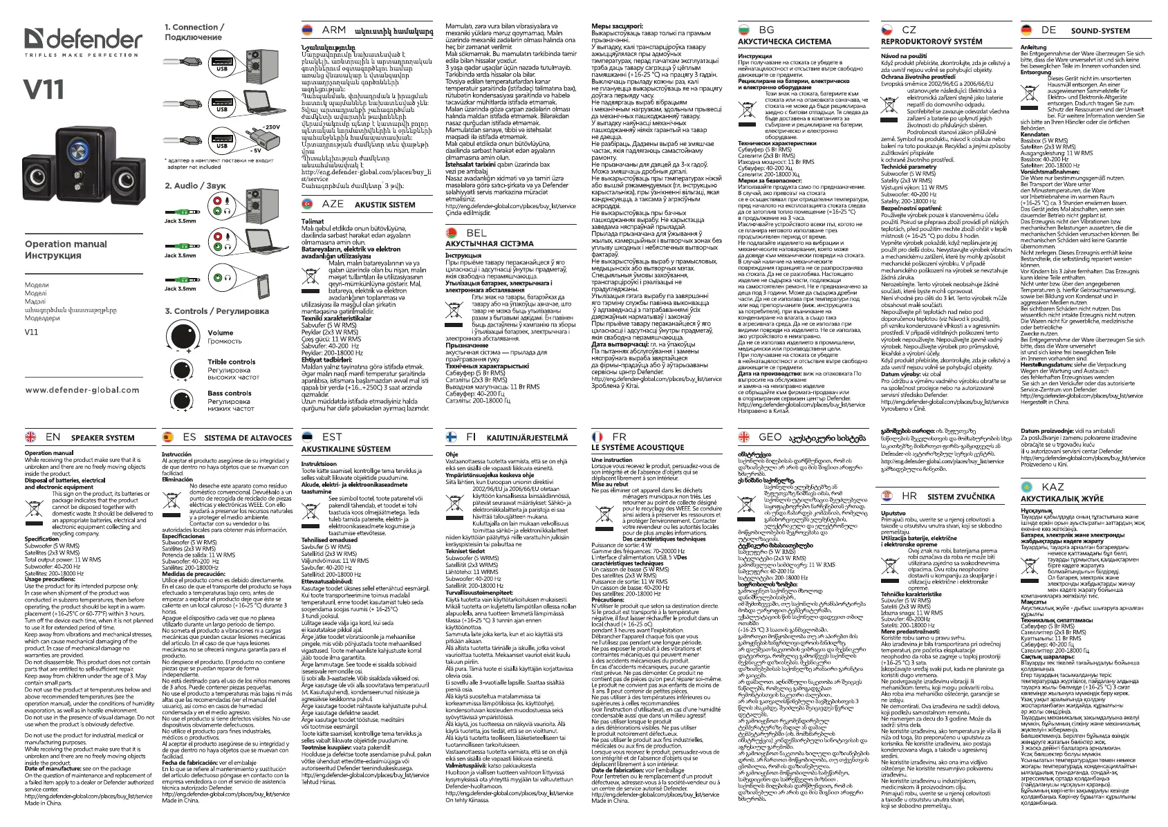 Hier is de Defender V11 (Speaker) gebruikershandleiding. 2 pagina's in taal met een gewicht van 1,185,690.0 Mb. Als u geen antwoorden op uw probleem kunt vinden Vraag het onze community.