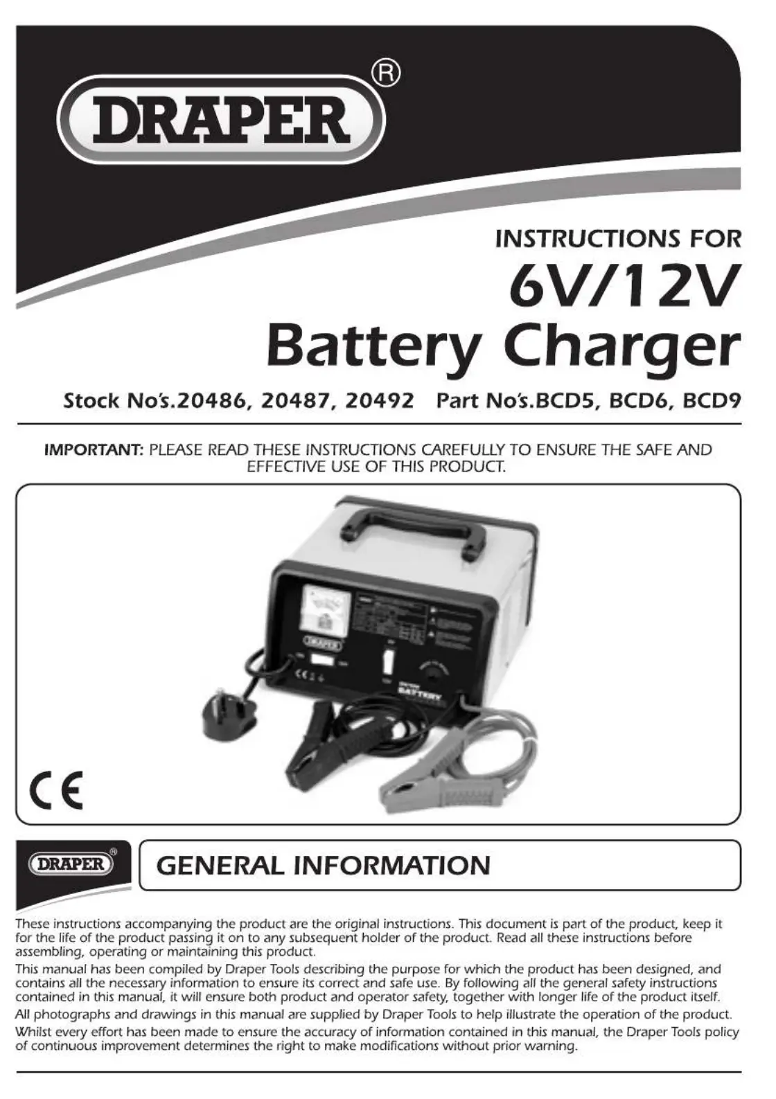 Hier is de Draper 20486 (Batterij-oplader) gebruikershandleiding. 19 pagina's in taal met een gewicht van 1,317,040.0 Mb. Als u geen antwoorden op uw probleem kunt vinden Vraag het onze community.