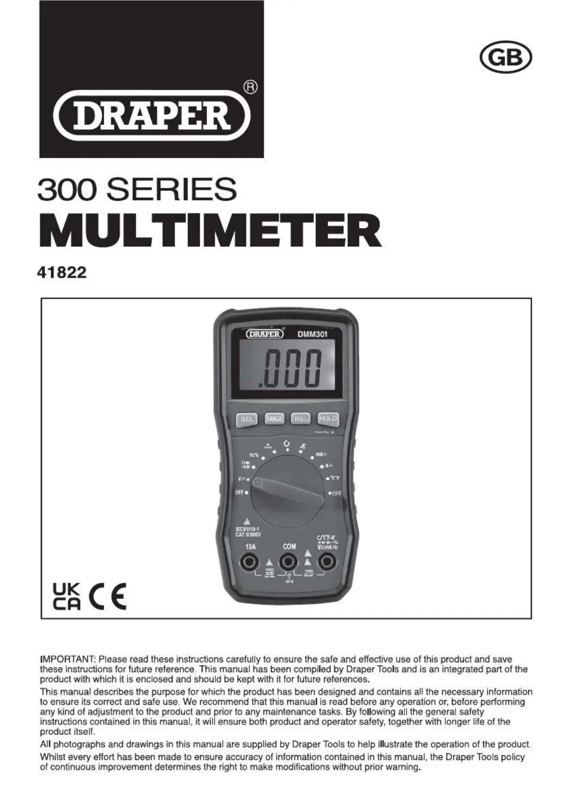 Draper 41822 Handleiding