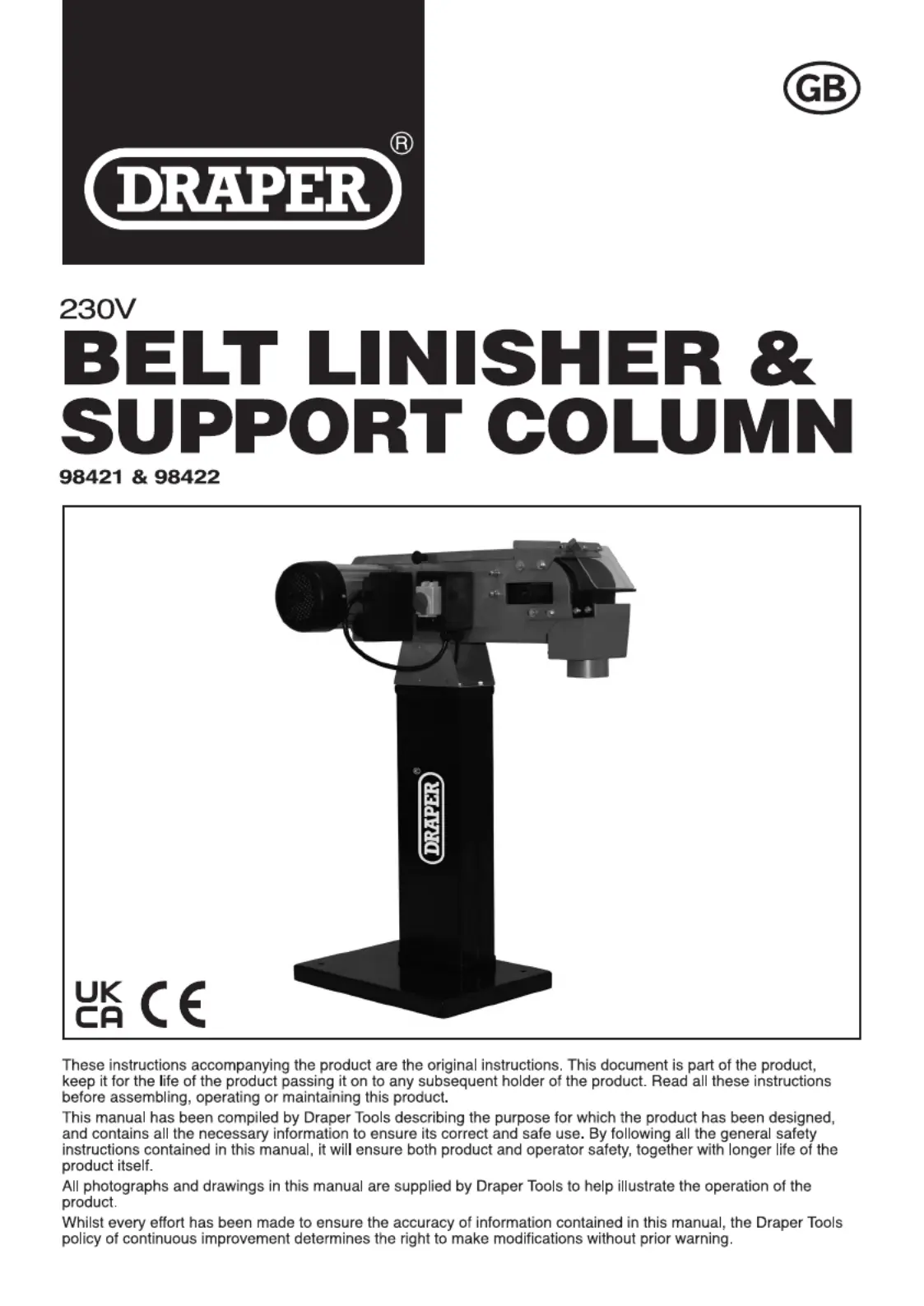 Hier is de Draper 98421 (Schuurmachine) gebruikershandleiding. 20 pagina's in taal met een gewicht van 2,737,500.0 Mb. Als u geen antwoorden op uw probleem kunt vinden Vraag het onze community.