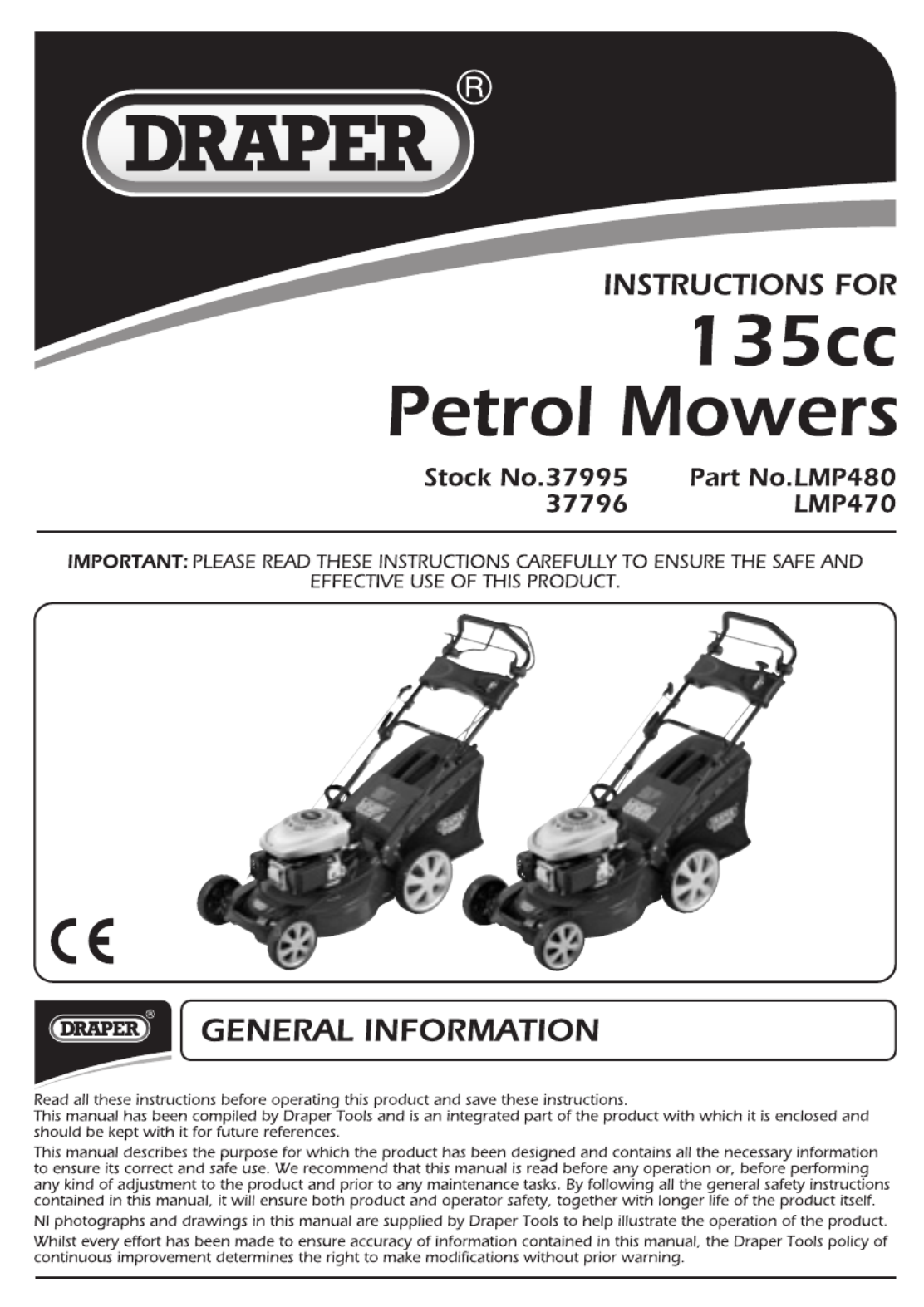 Hier is de Draper LMP470 (Grasmaaier) gebruikershandleiding. 16 pagina's in taal - met een gewicht van 2.8 Mb. Als u geen antwoorden op uw probleem kunt vinden Vraag het onze community.