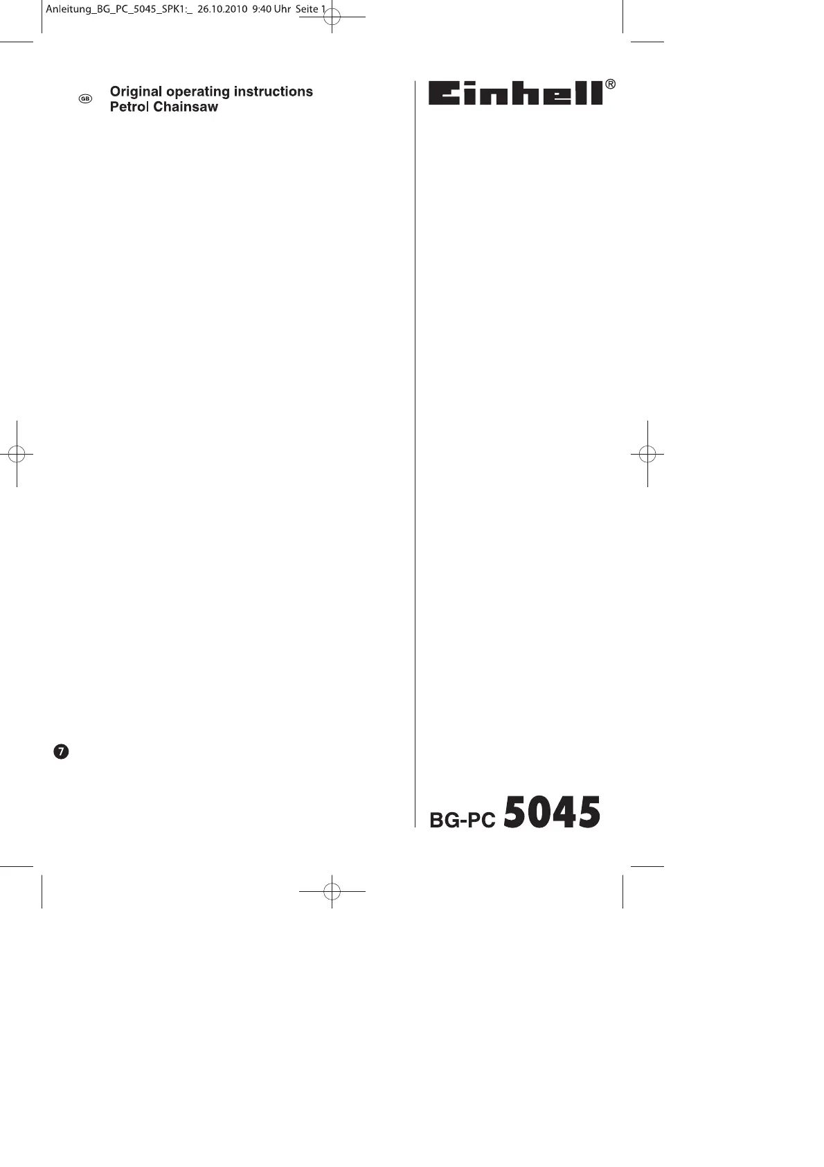 Hier is de Einhell BG-PC 5045 (Kettingzaag) gebruikershandleiding. 20 pagina's in taal Engels met een gewicht van 3,542,000.0 Mb. Als u geen antwoorden op uw probleem kunt vinden Vraag het onze community.