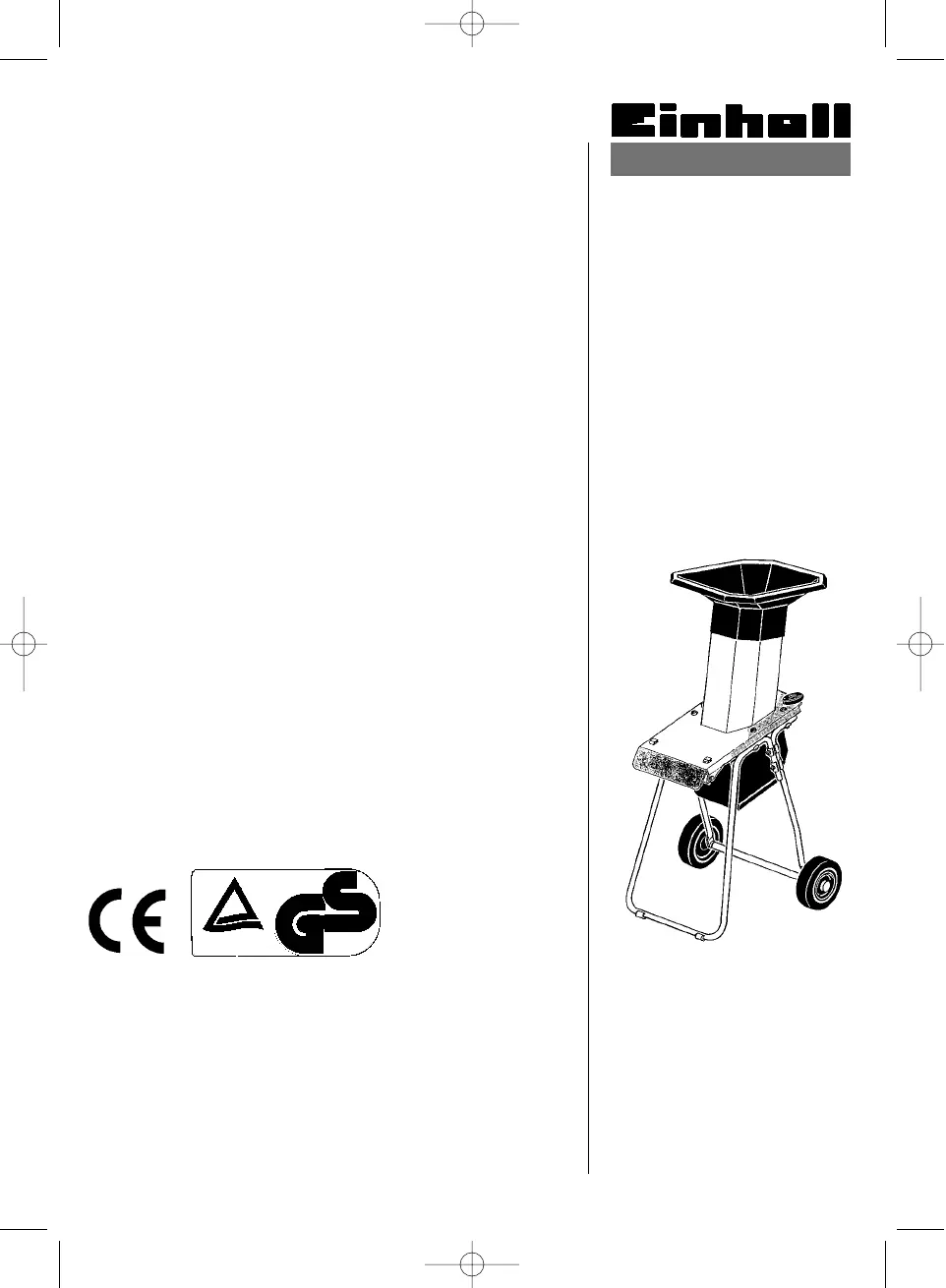 Hier is de Einhell ECH 2200-F Silent (Hakselaar) gebruikershandleiding. 32 pagina's in taal met een gewicht van 3,463,890.0 Mb. Als u geen antwoorden op uw probleem kunt vinden Vraag het onze community.