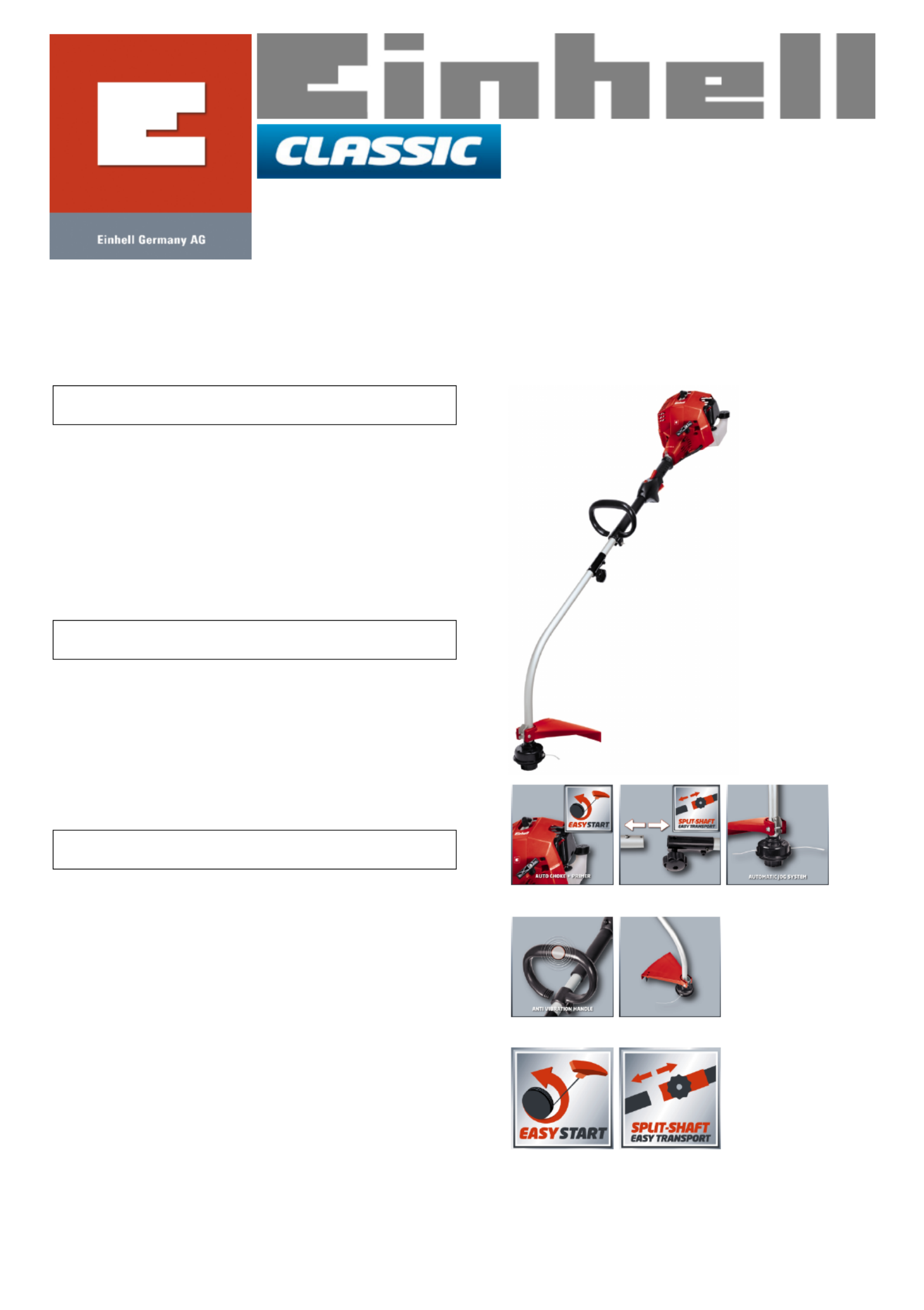 Hier is de Einhell GC-PT 2538 I AS (Grastrimmer) gebruikershandleiding. 2 pagina's in taal Engels met een gewicht van 0.3 Mb. Als u geen antwoorden op uw probleem kunt vinden Vraag het onze community.