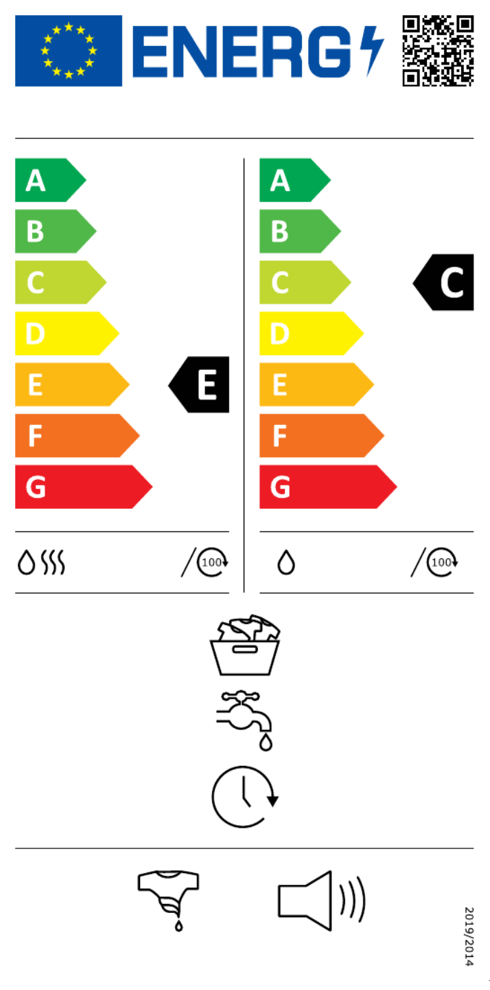 | Energie-efficiëntieklasse (wassen en drogen): | E |