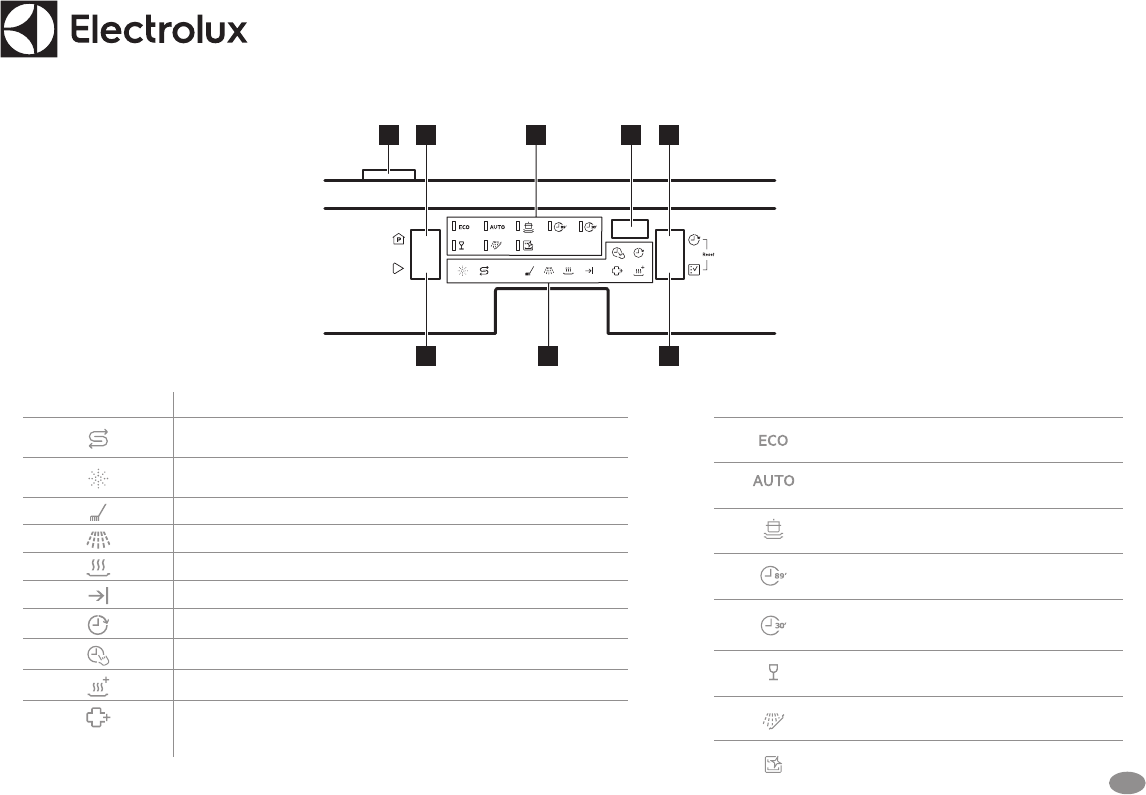 Rinsing phase. It is on when the rinsing phase operates.
