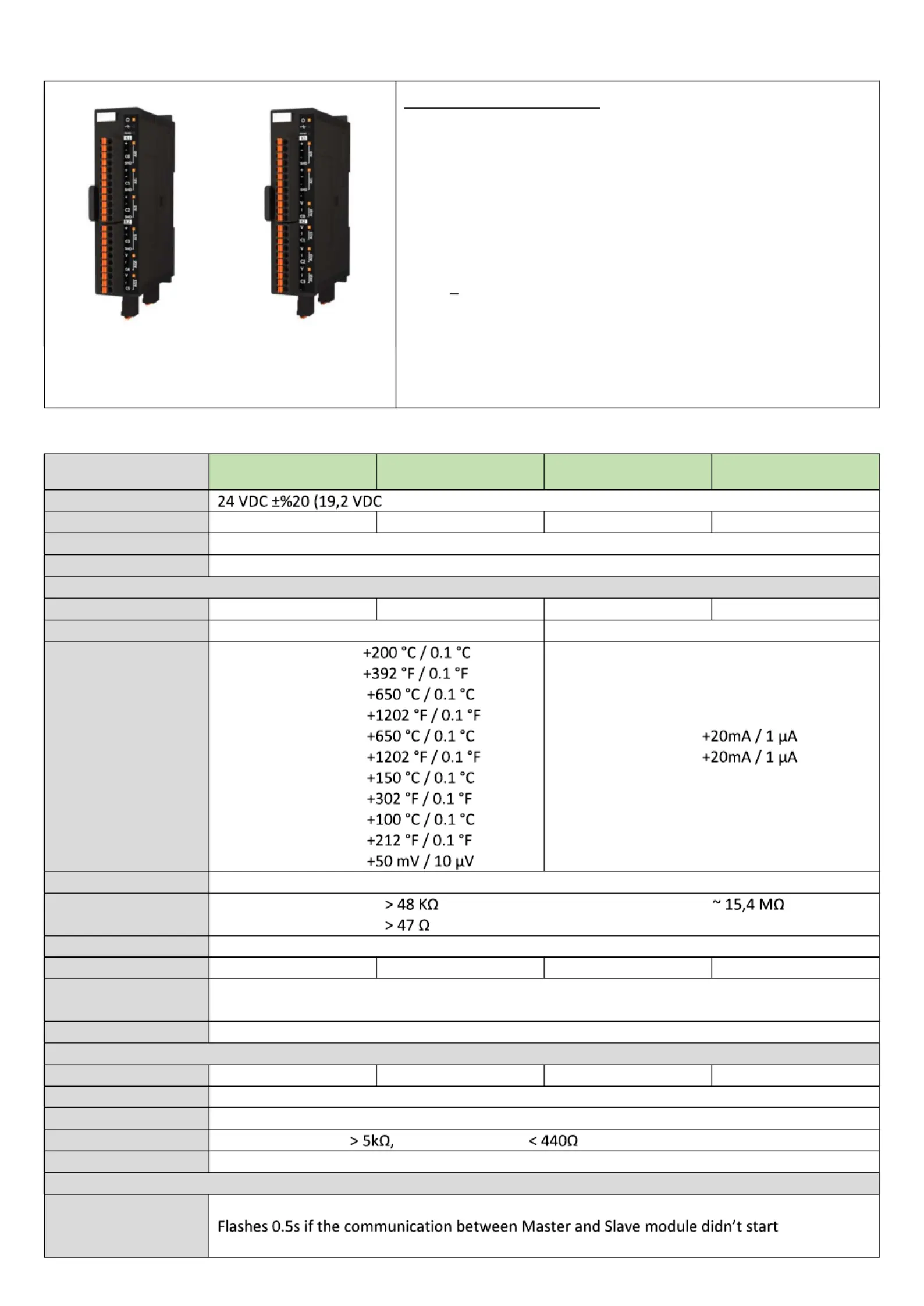 Flashes 1s if the communicaon between Master and Slave module broken
