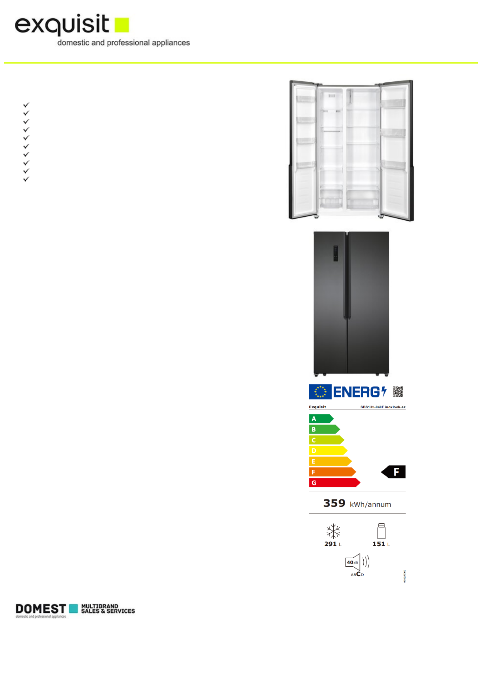 442 liter netto inhoud ( 291 liter koelen + 151 liter vriezen )