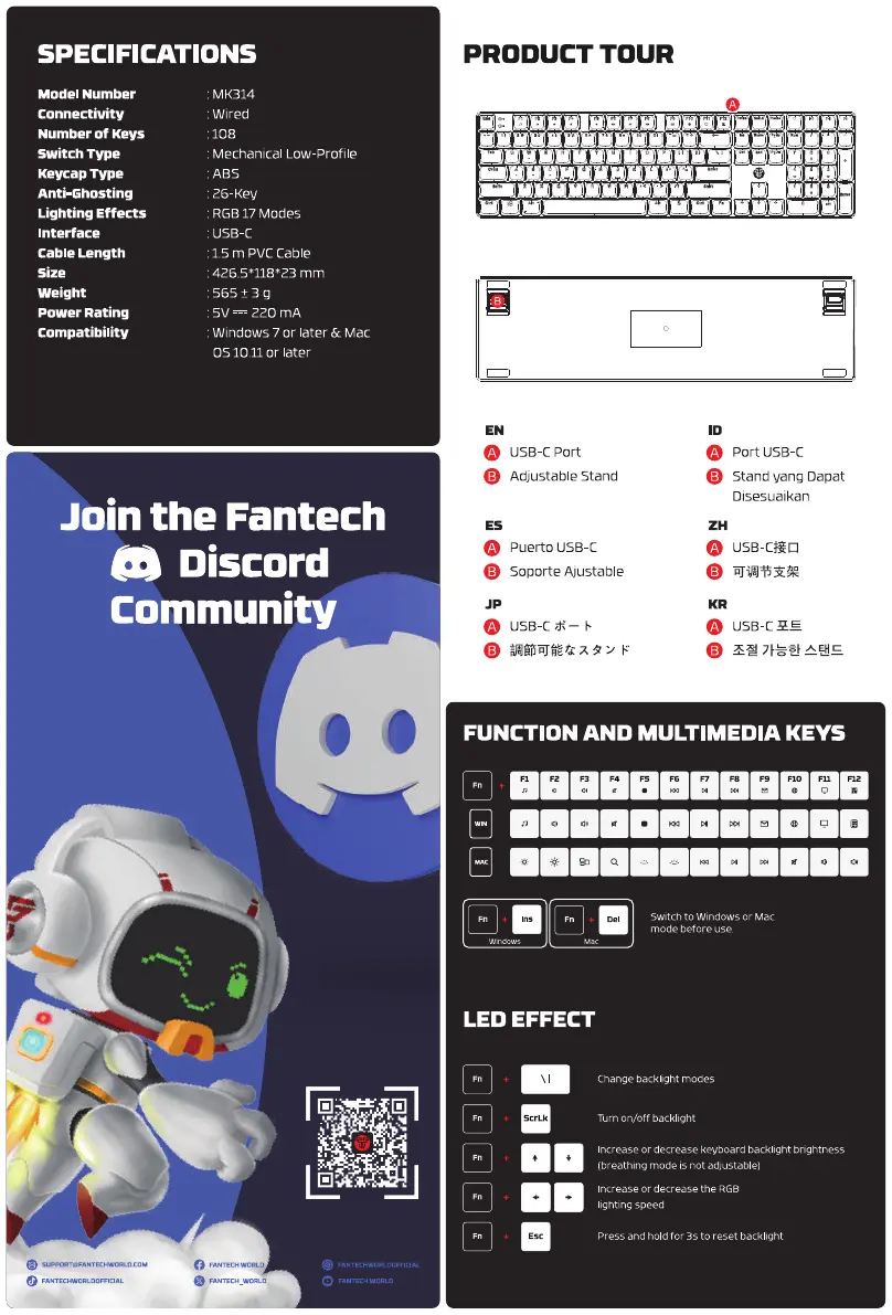 Hier is de Fantech ATOM AIR108 MK314 (Keyboard) gebruikershandleiding. 2 pagina's in taal met een gewicht van 586,389.0 Mb. Als u geen antwoorden op uw probleem kunt vinden Vraag het onze community.