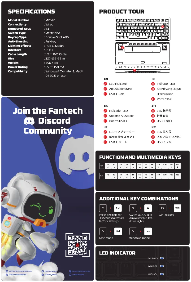Hier is de Fantech ATOM X83 MK612 (Keyboard) gebruikershandleiding. 2 pagina's in taal met een gewicht van 586,632.0 Mb. Als u geen antwoorden op uw probleem kunt vinden Vraag het onze community.