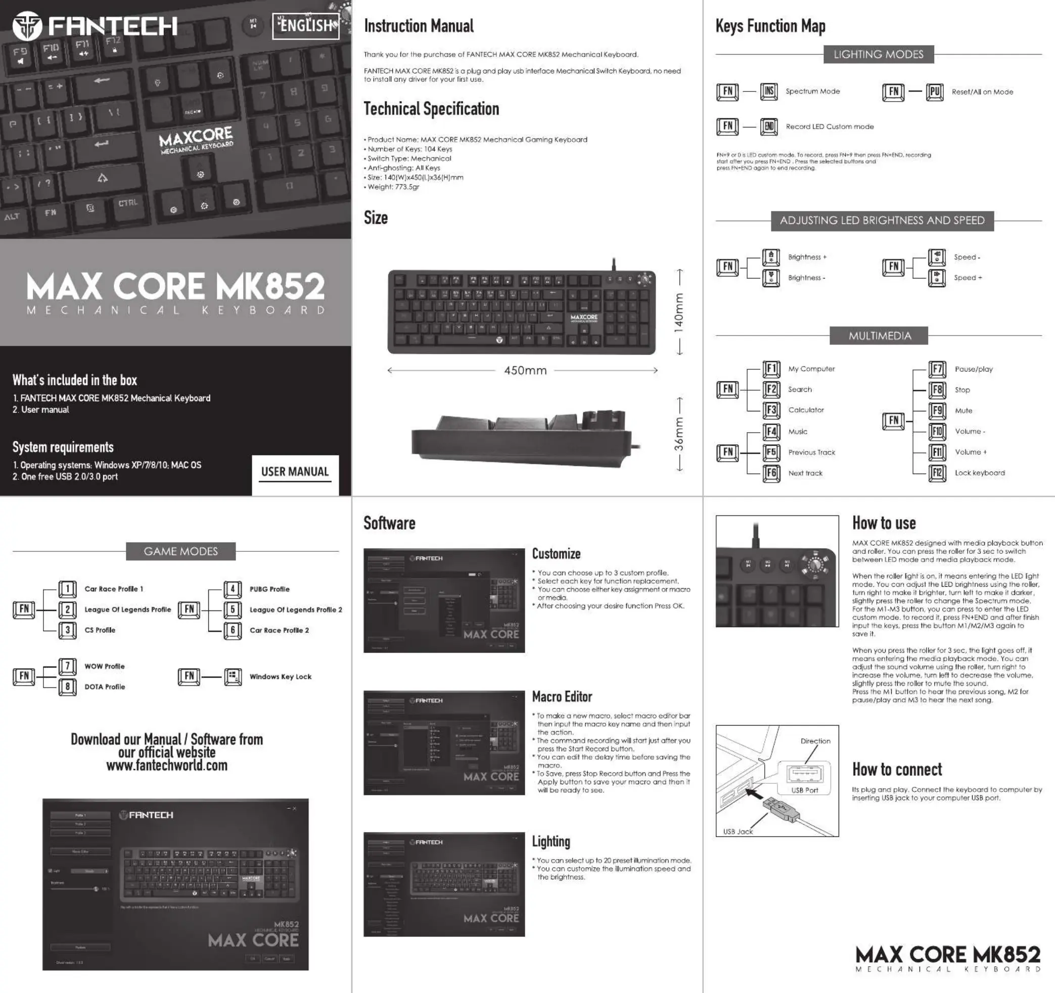 Hier is de Fantech MAXCORE MK852 (Keyboard) gebruikershandleiding. 1 pagina's in taal met een gewicht van 240,967.0 Mb. Als u geen antwoorden op uw probleem kunt vinden Vraag het onze community.
