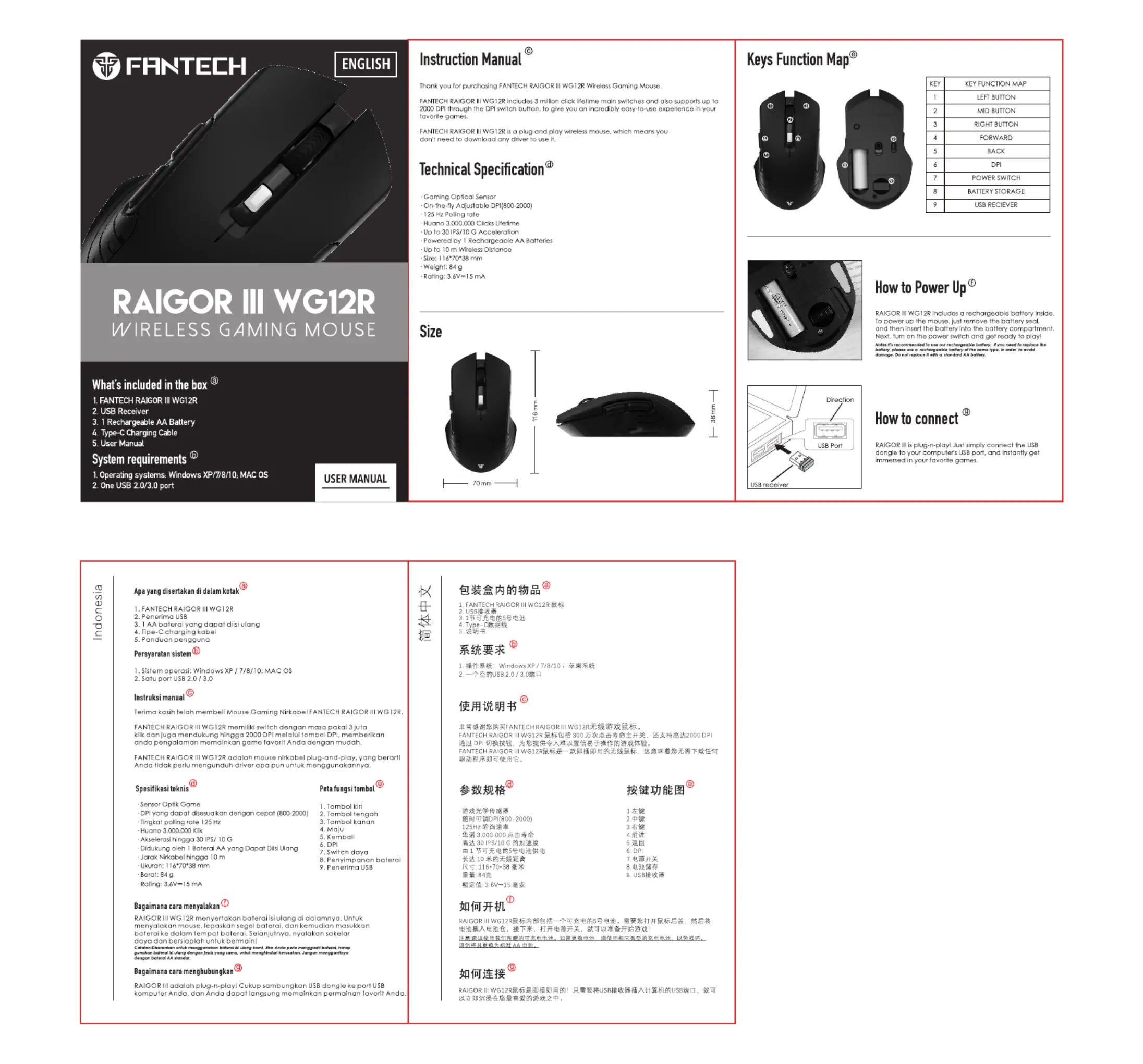 Hier is de Fantech Raigor III WG12R (Muis) gebruikershandleiding. 1 pagina's in taal met een gewicht van 384,853.0 Mb. Als u geen antwoorden op uw probleem kunt vinden Vraag het onze community.