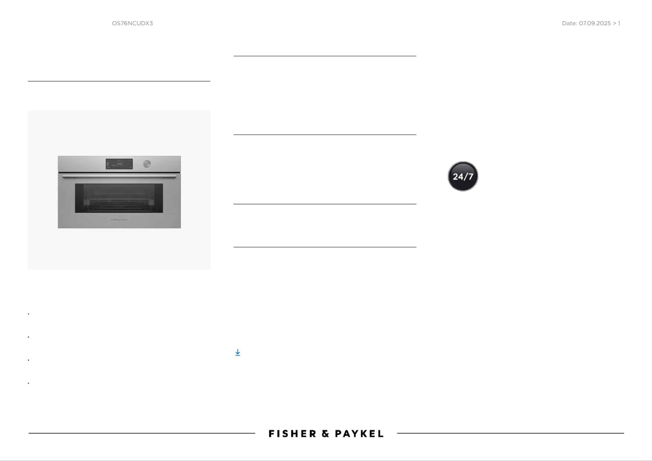 Probleemoplossing Fisher Paykel OS76NCUDX3