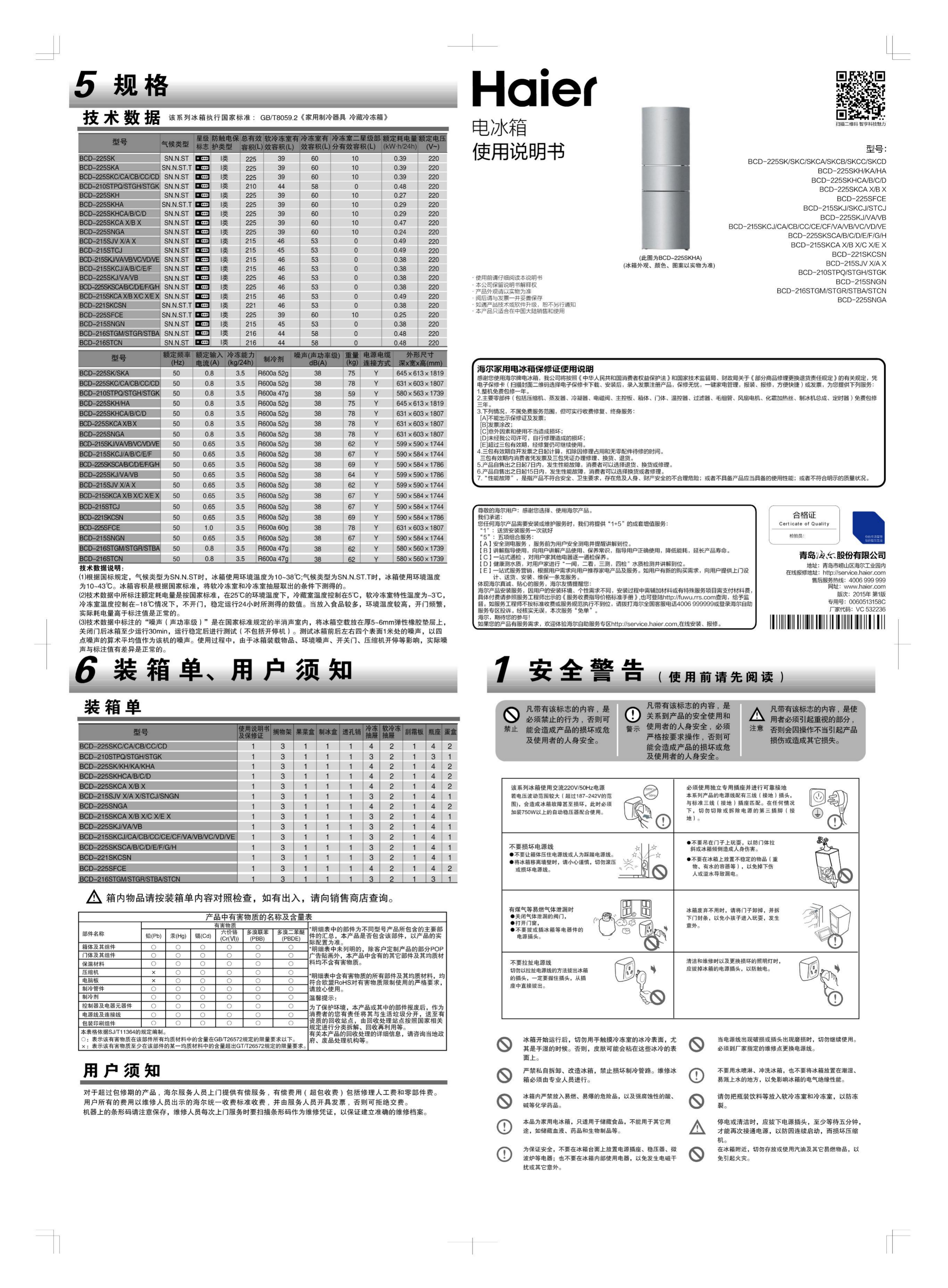 Hier is de Haier BCD-225SNGA (Koelkast) gebruikershandleiding. 2 pagina's in taal Engels met een gewicht van 1.1 Mb. Als u geen antwoorden op uw probleem kunt vinden Vraag het onze community.